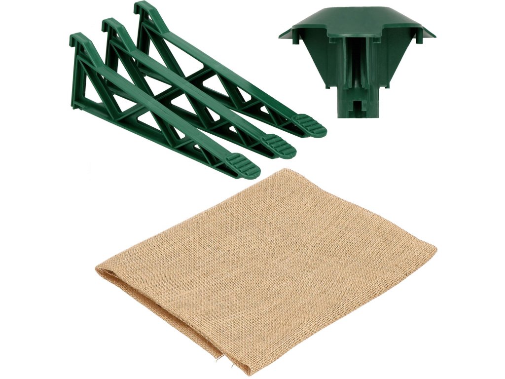 Zelený plastový podstavec skrytý pod jutovinou - rozstup nôh 40 cm