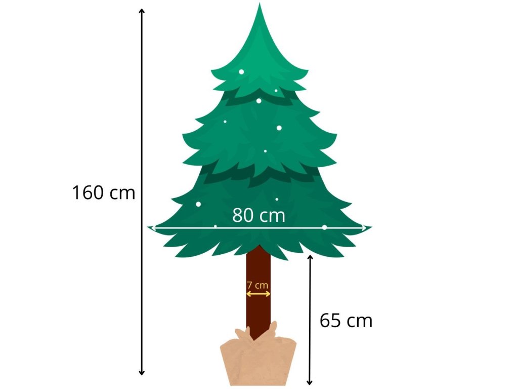 Rozpätie v závislosti od usporiadania konárov v spodnej časti vianočného stromčeka je 80 cm