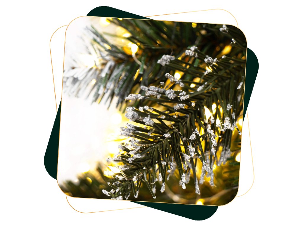 - Farba ihličia: zelená + konce konárov s dvoma druhmi polevy - biela a strieborno-glitrová.