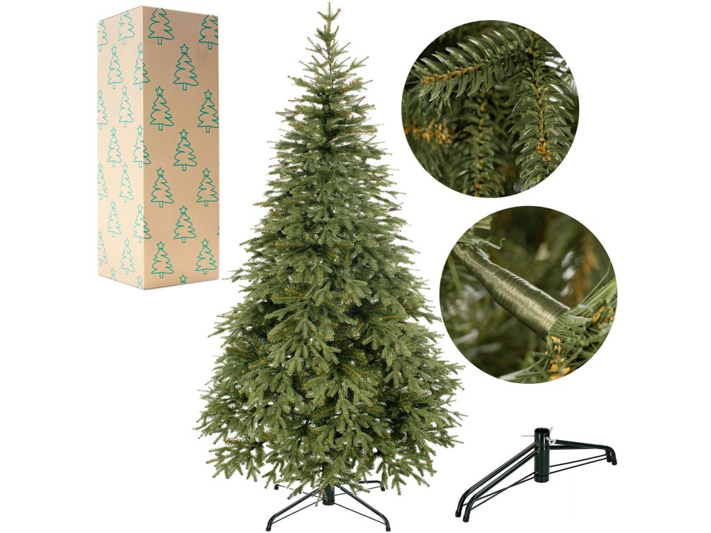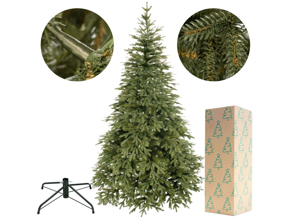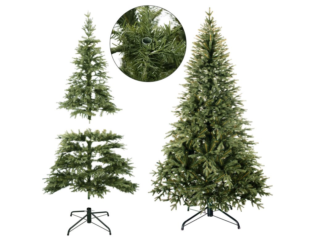 Rozpätie v závislosti od usporiadania konárov je v spodnej časti vianočného stromčeka až 130 cm