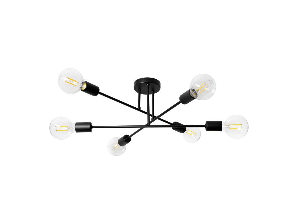 - Šest žarnic: Maksimalna svetlobna moč je zagotovljena s šestimi žarnicami tipa E27, ki enakomerno osvetlijo celoten prostor.