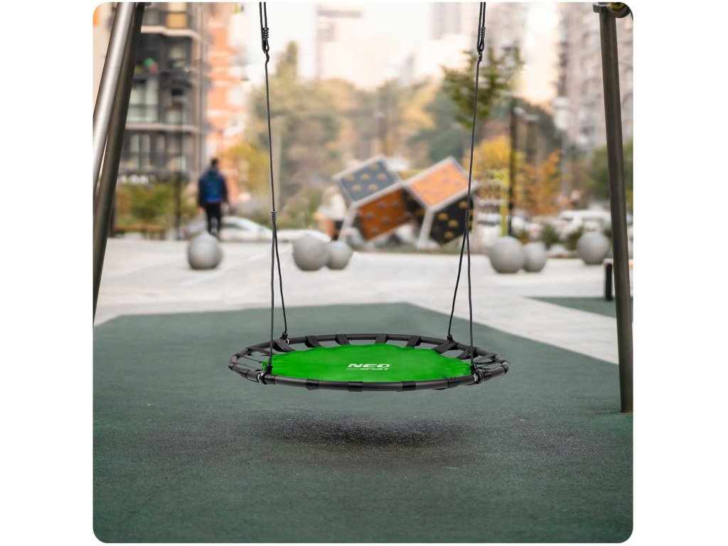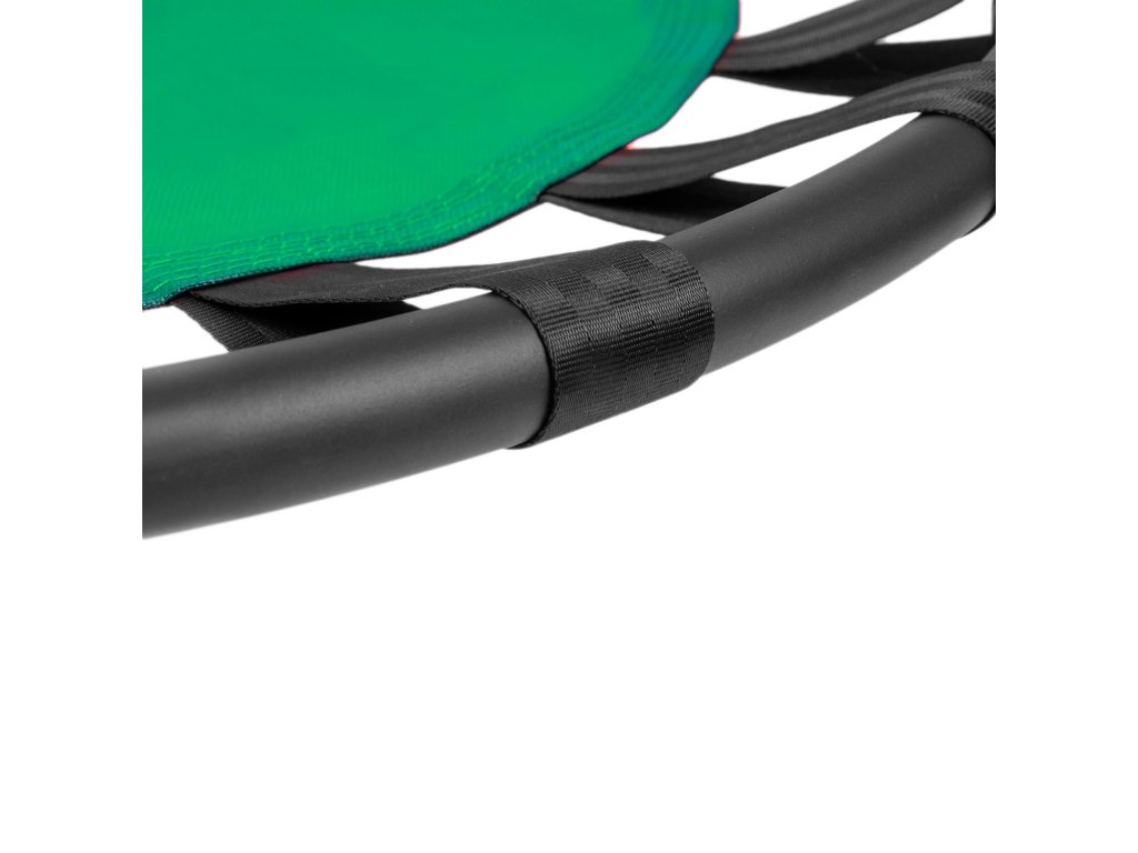 Je odlična zabava za mlajše in malo starejše. Gugalnica na jeklenem ogrodju oblečenem v mehko zaščitno peno, izdelana iz trpežnega materiala z večkratnim šivanjem in debelimi visečimi vrvmi. Nudi varnost, stabilnost in vzdržljivost. Poliester Oxford 600D, iz katerega je sedež izdelan, je vodoodporen in enostavno čistljiv.