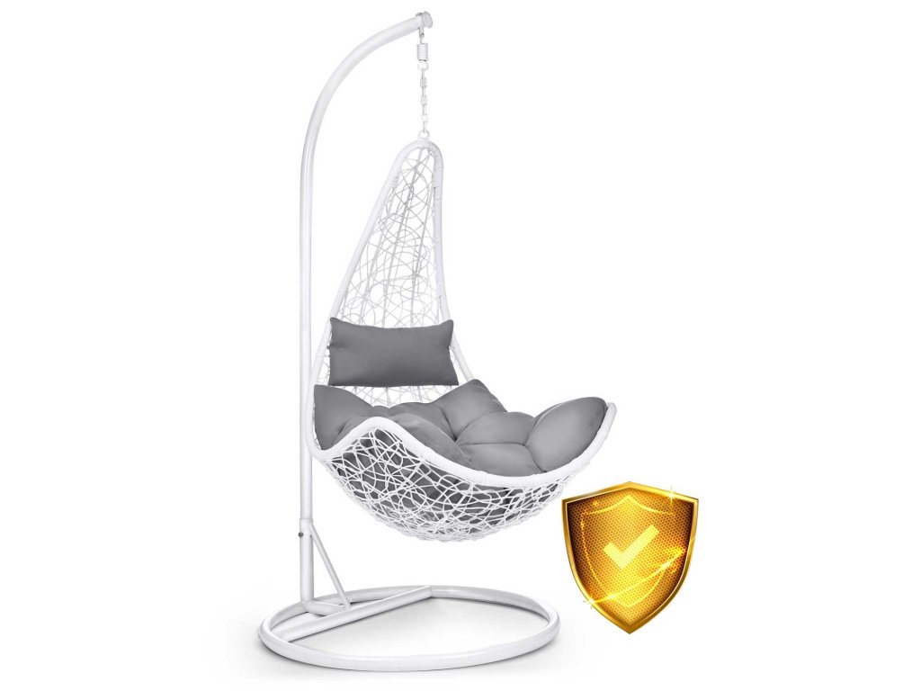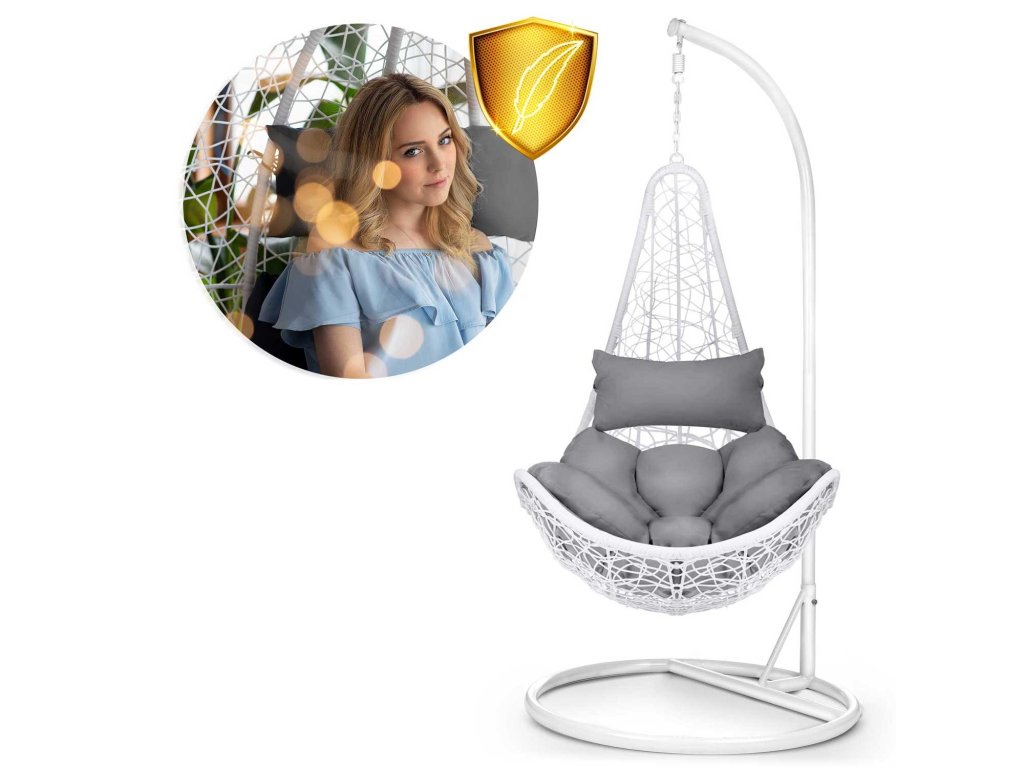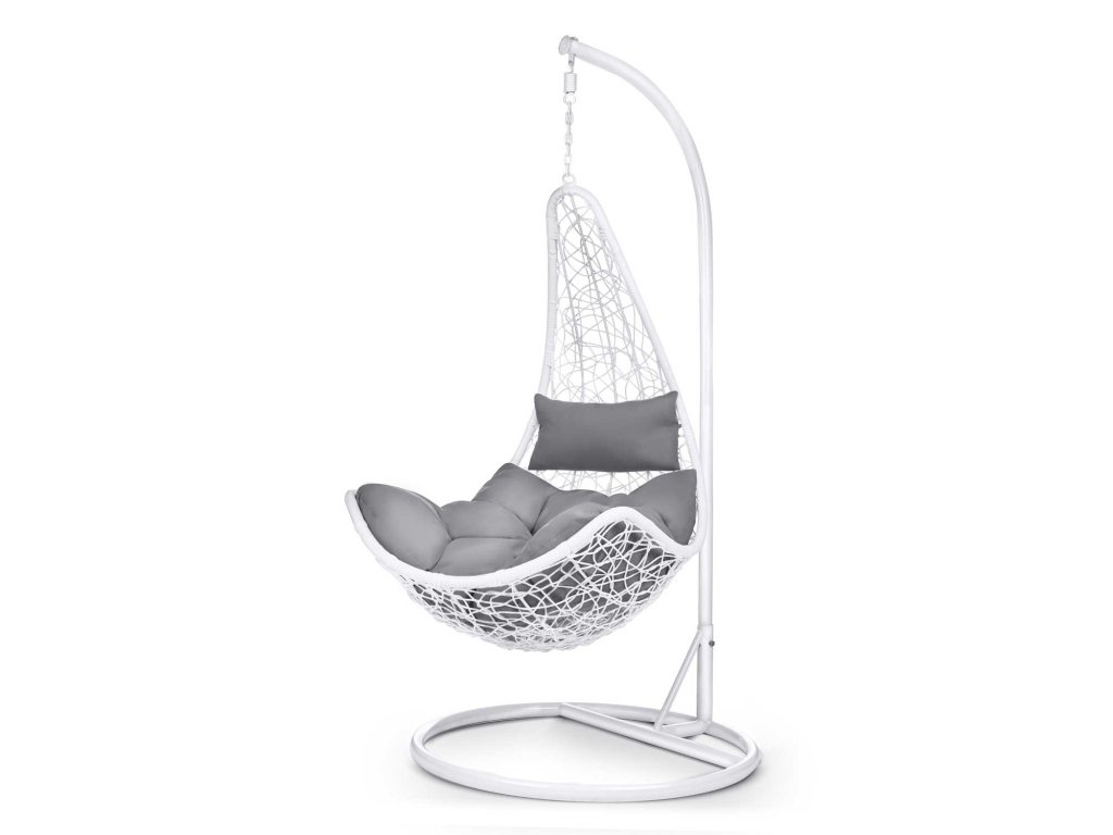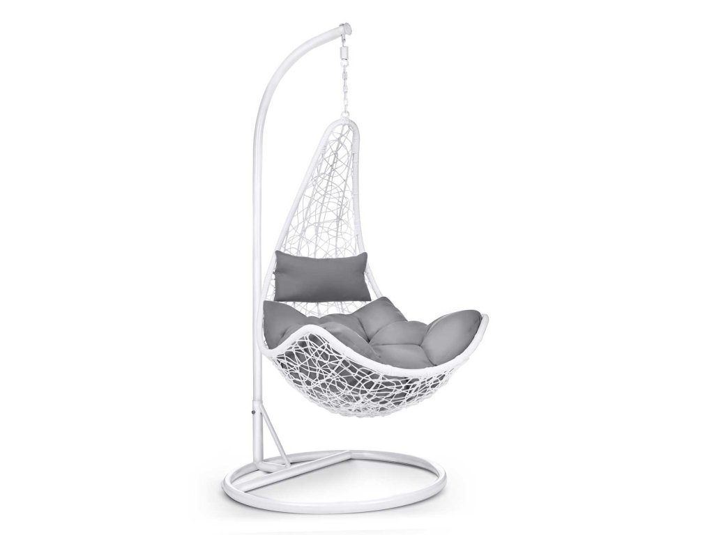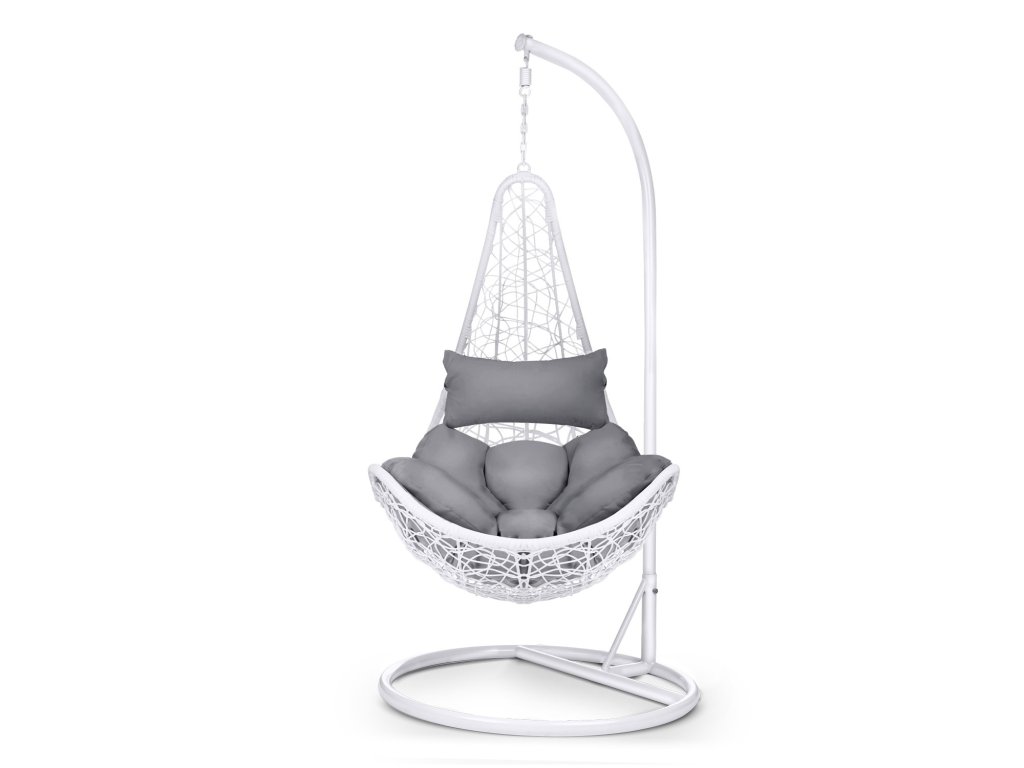 Viseči vrtni stol Cabana bela + sivi blazini