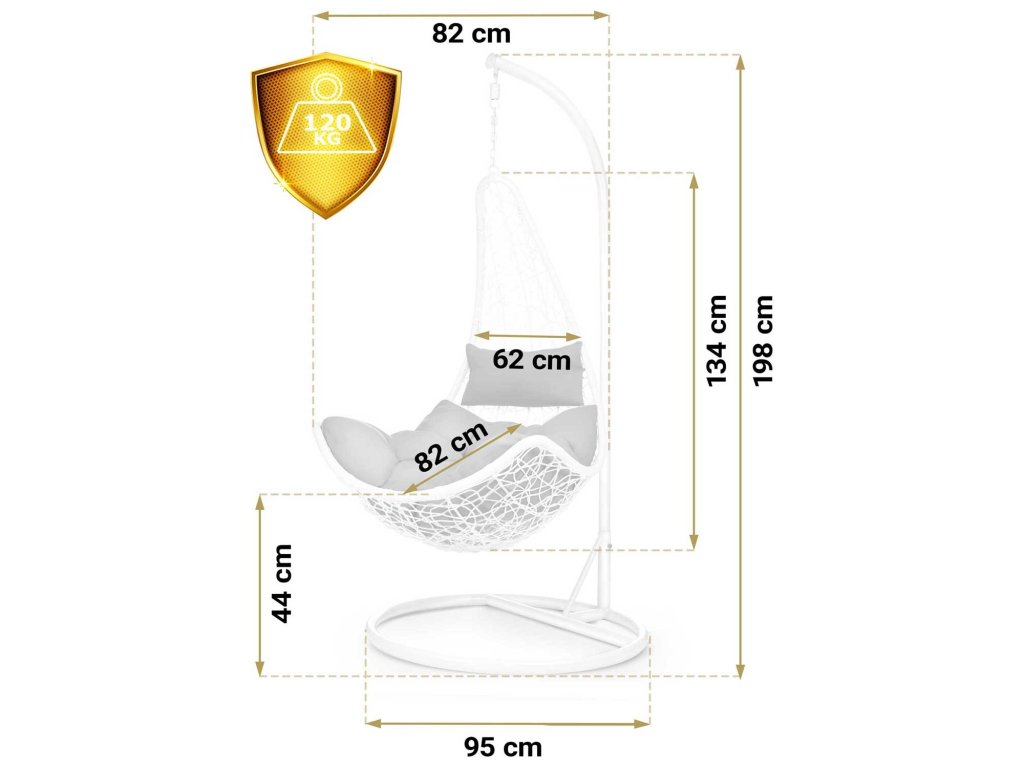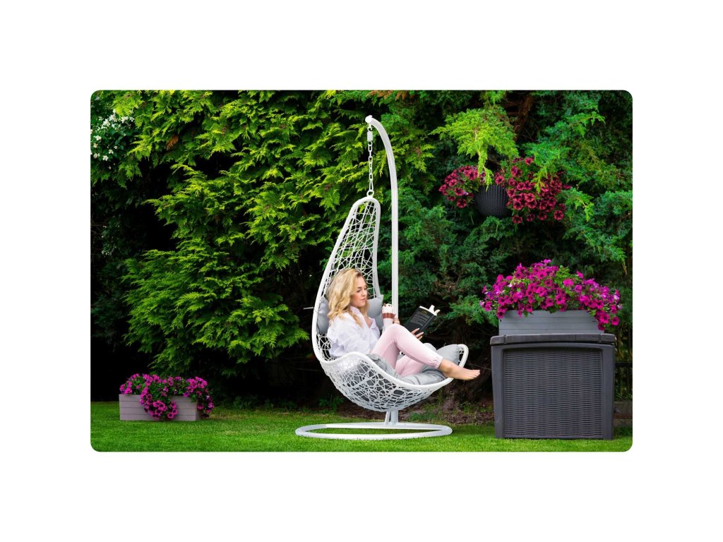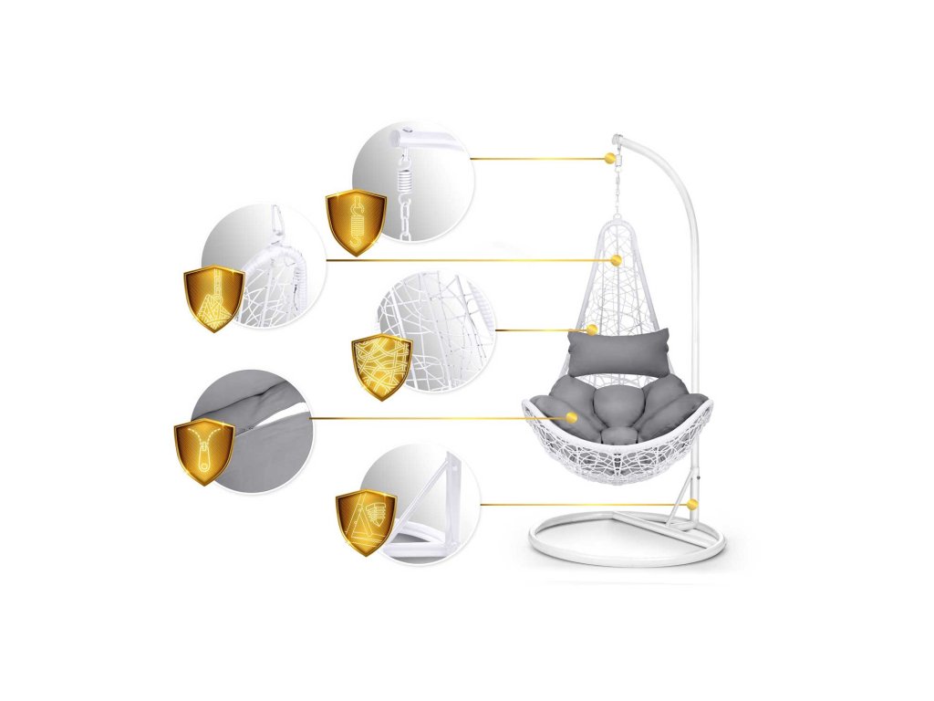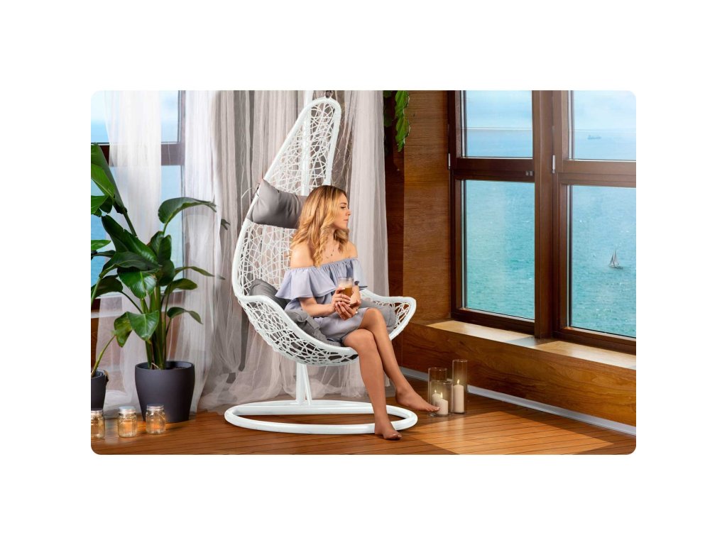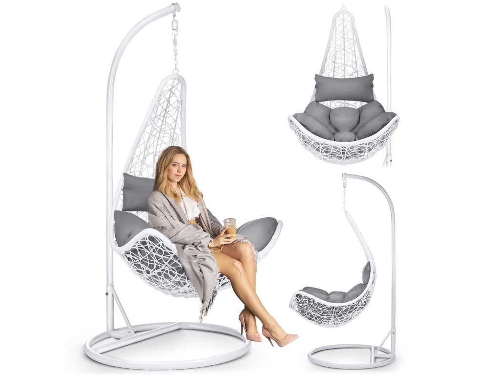 Viseči vrtni stol Cabana bela + sivi blazini
