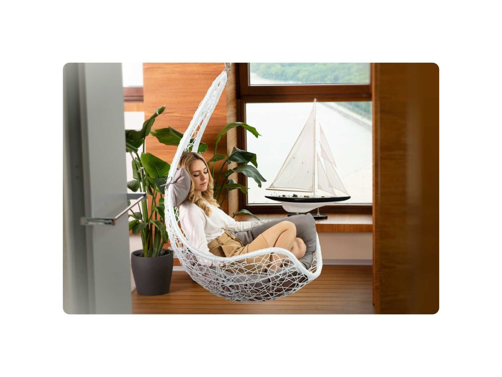 Stol Cabana™ je preizkušena zasnova visečega stola, ki se popolnoma prilega na teraso, balkon, pa tudi v notranje prostore. V prostoru ga lahko tudi obesiš na strop!
