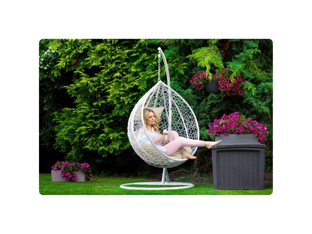 Viseči vrtni stol Hawana beli + bež blazine Sofotel