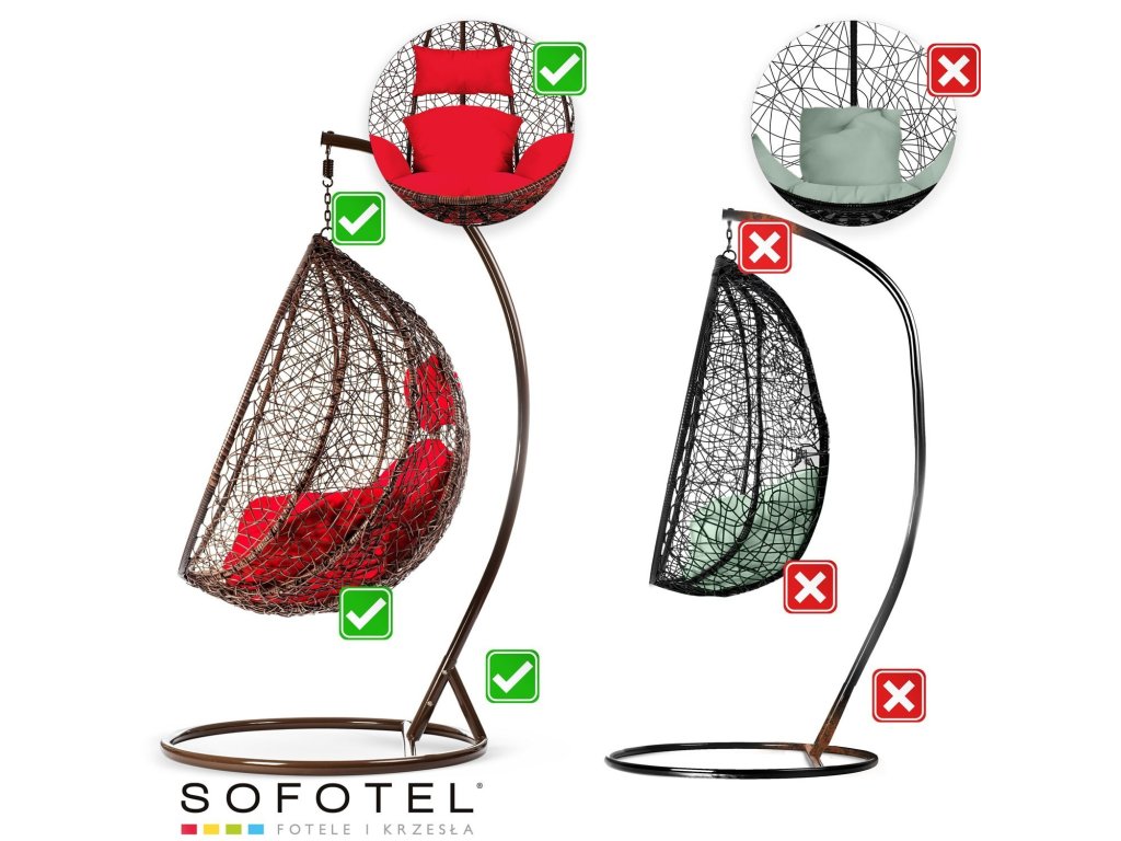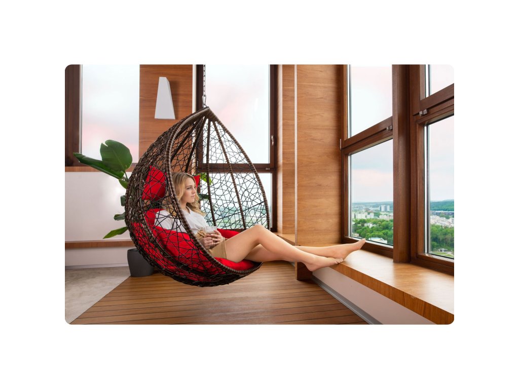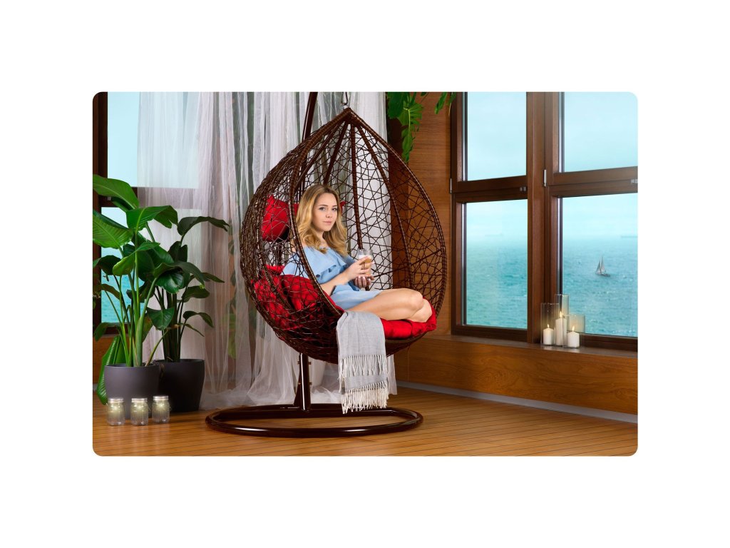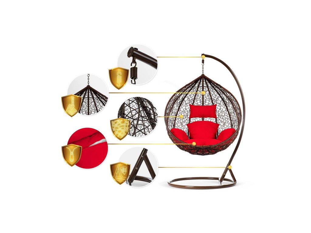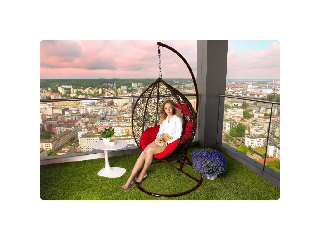 Viseči vrtni stol Hawana rjava + rdeče blazine Sofotel