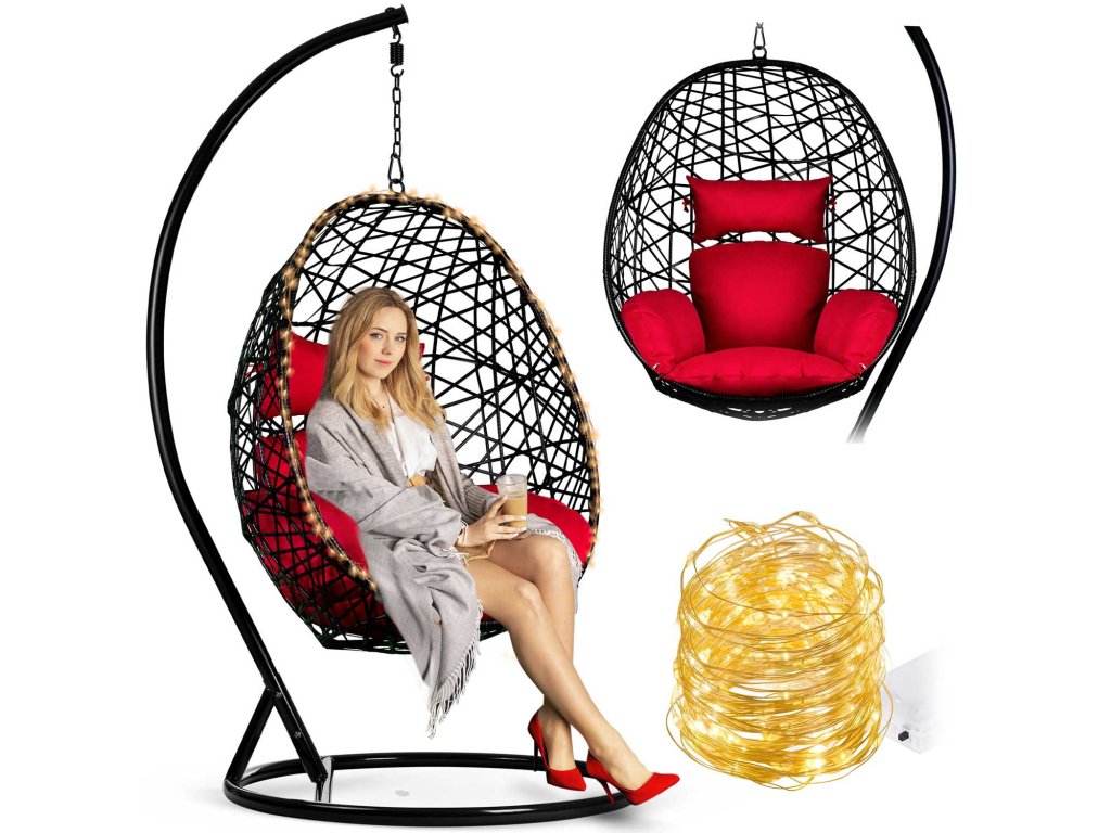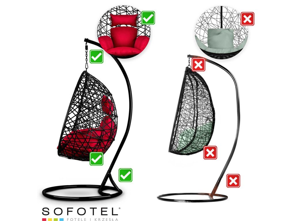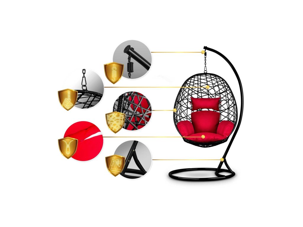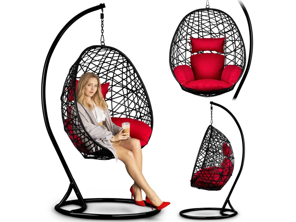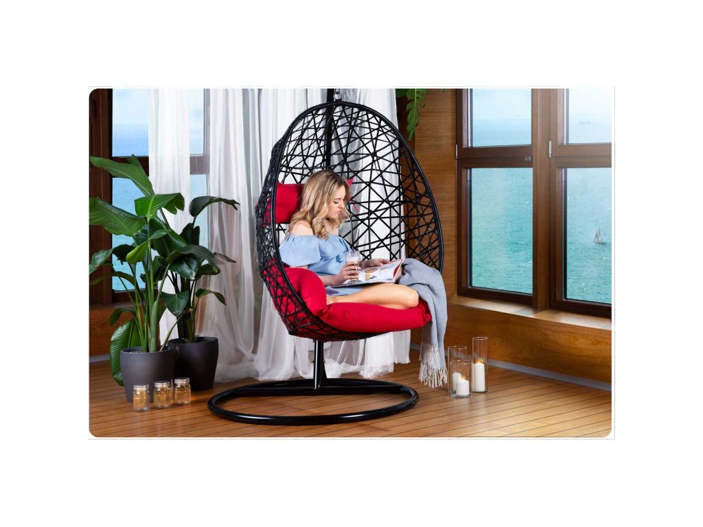 Viseči vrtni stol Sabana črno + rdeče