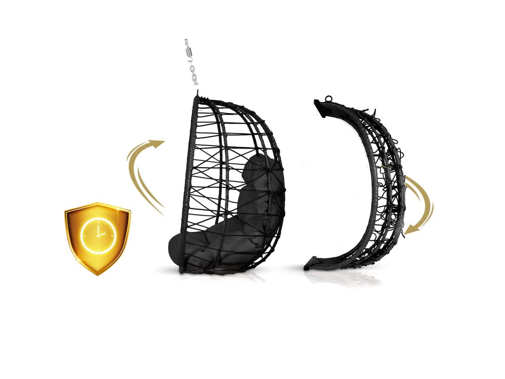 Okrepljen obešalni del fotelja, močna veriga in kavelj za pritrditev z vzmetjo!