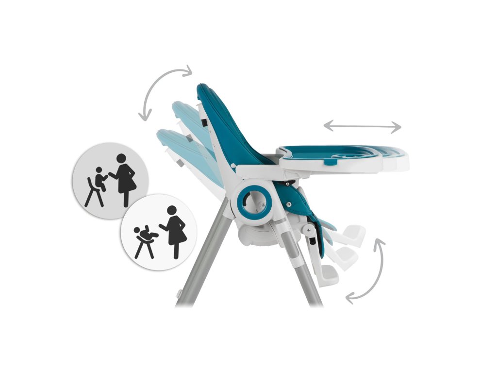 - položaj pladnja lahko prilagodite ali ga odstranite, kadar želite vzeti otroka iz stola ali ga postaviti k mizi pri družinski večerji