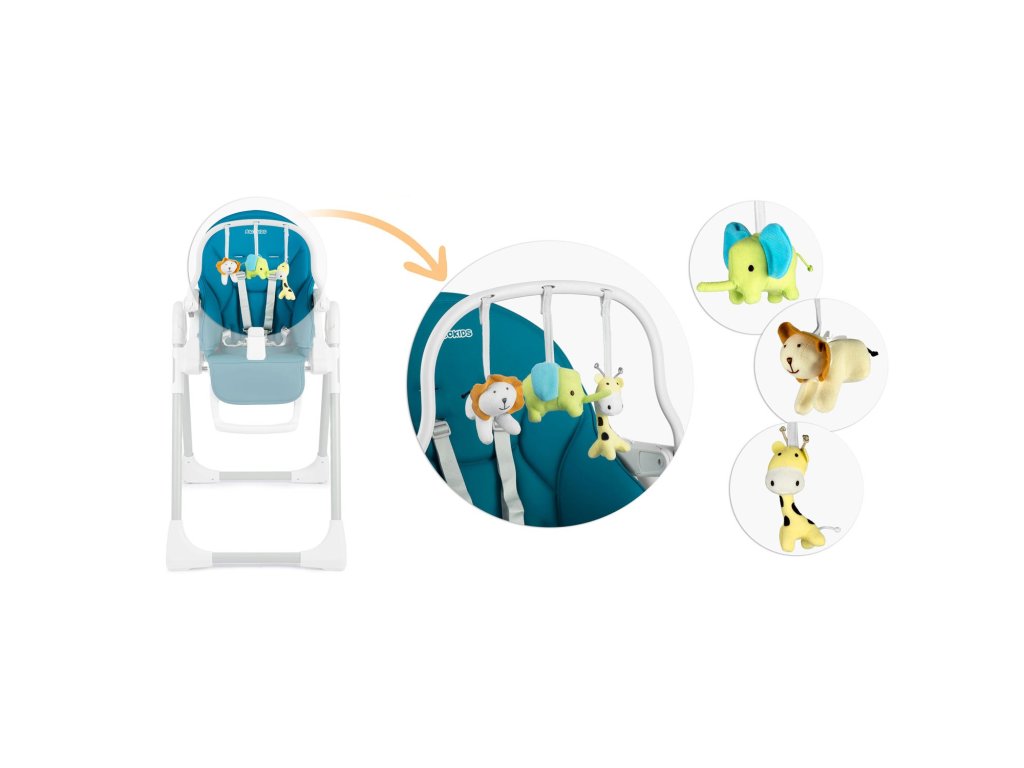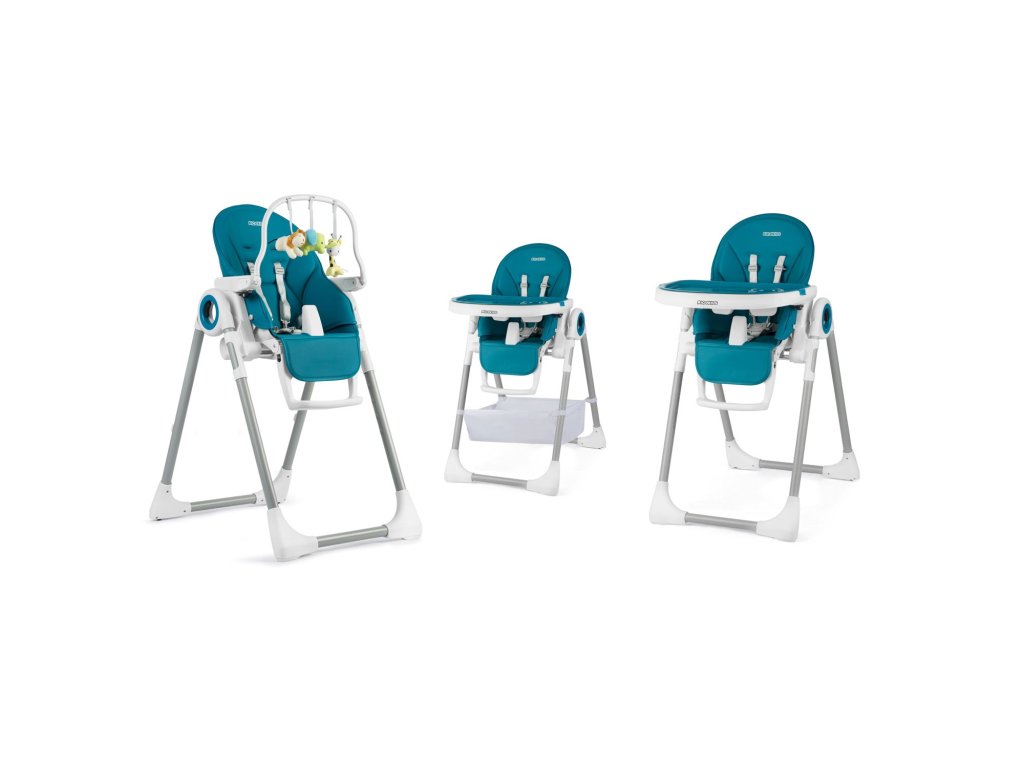 - Večfunkcionalnost - visoki stol z odstranljivim pladnjem, ležalnikom, mestom za igro