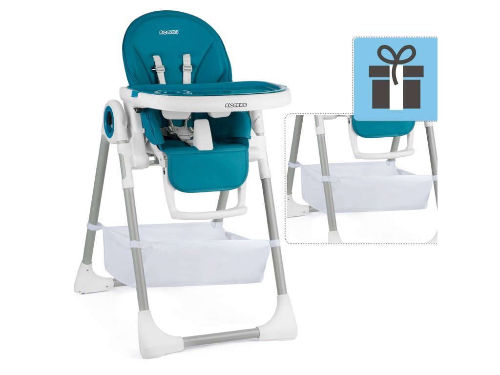 Visoki stol za hranjenje s pladnjem, ležalnik Belo temno moder + lok