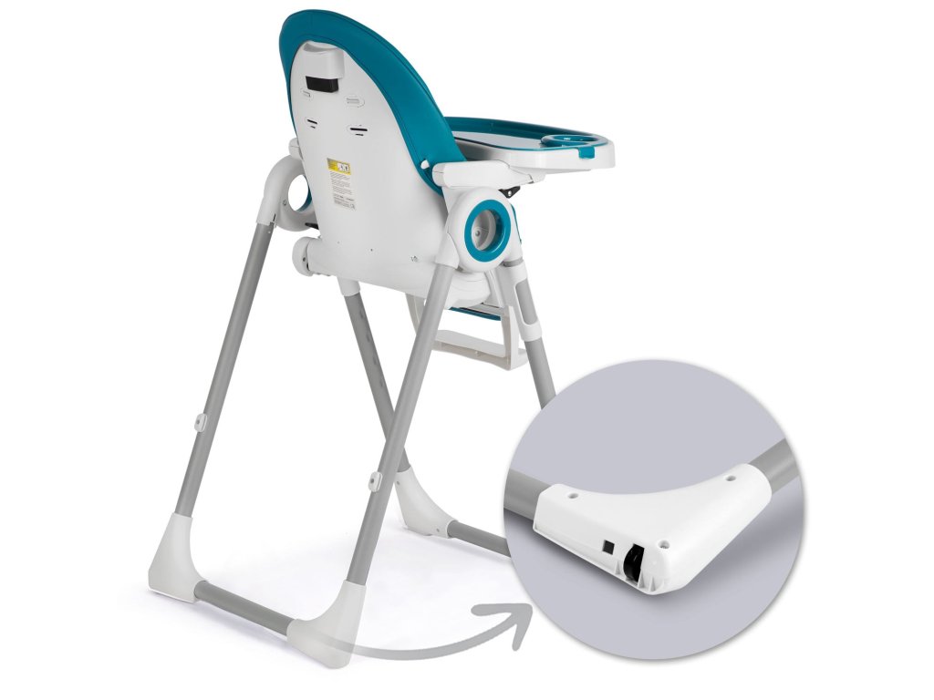 - Enostaven za uporabo - odstranljiv pladenj z dodatno snemljivo podlogo z dvignjenimi robovi, kar preprečuje premikanje hrane ali kozarca, vgrajena kolesca v zadnjih nogah