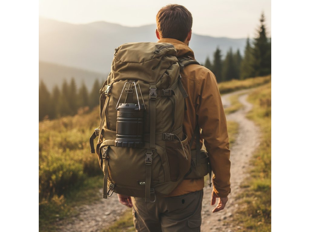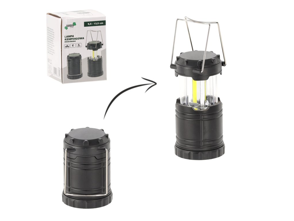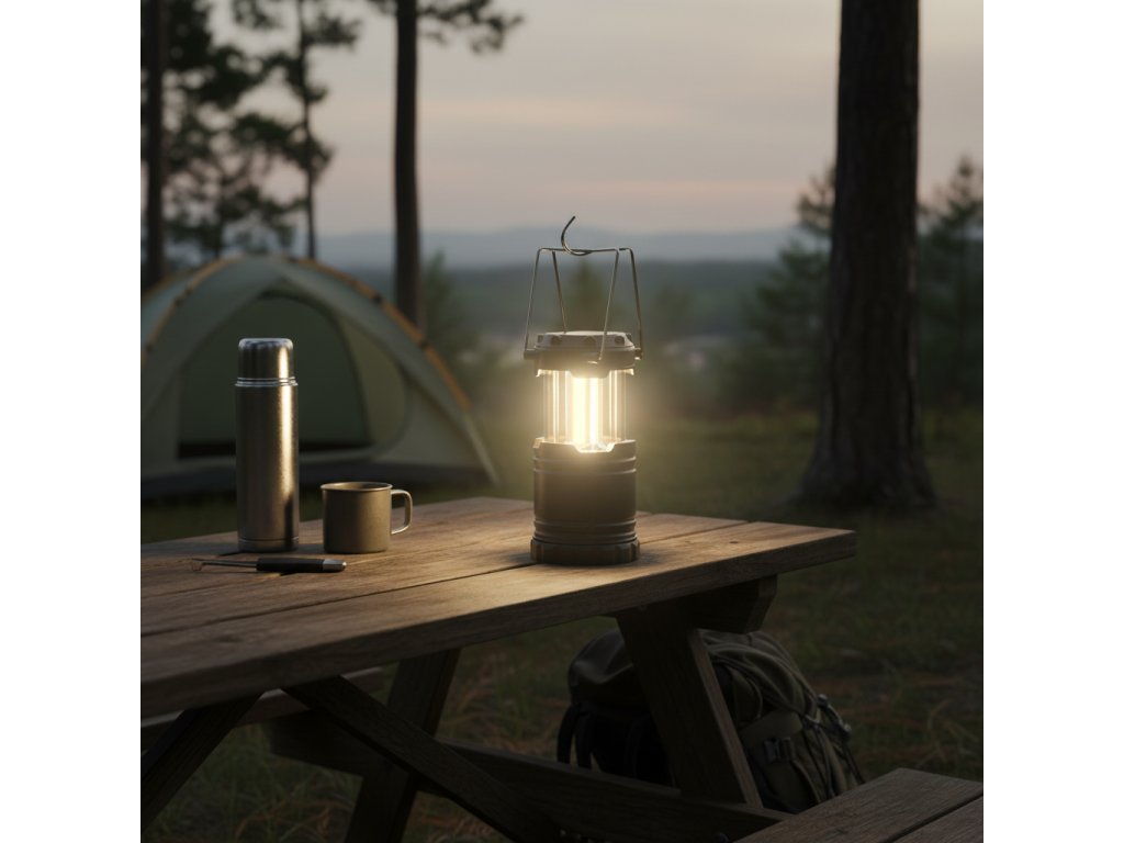 Prenosna kampirska lampa razprodornik je kompakten in funkcionalen vir svetlobe, idealen za uporabo med kampiranjem, taborjenjem in drugimi dejavnostmi na svežem zraku. Lampa ima nastavljivo višino, kar omogoča prilagoditev različnim potrebam, njena trdna konstrukcija pa zagotavlja trajnost in udobje pri uporabi. Napajana je z AA baterijami, kar jo naredi idealno za zahtevne pogoje.