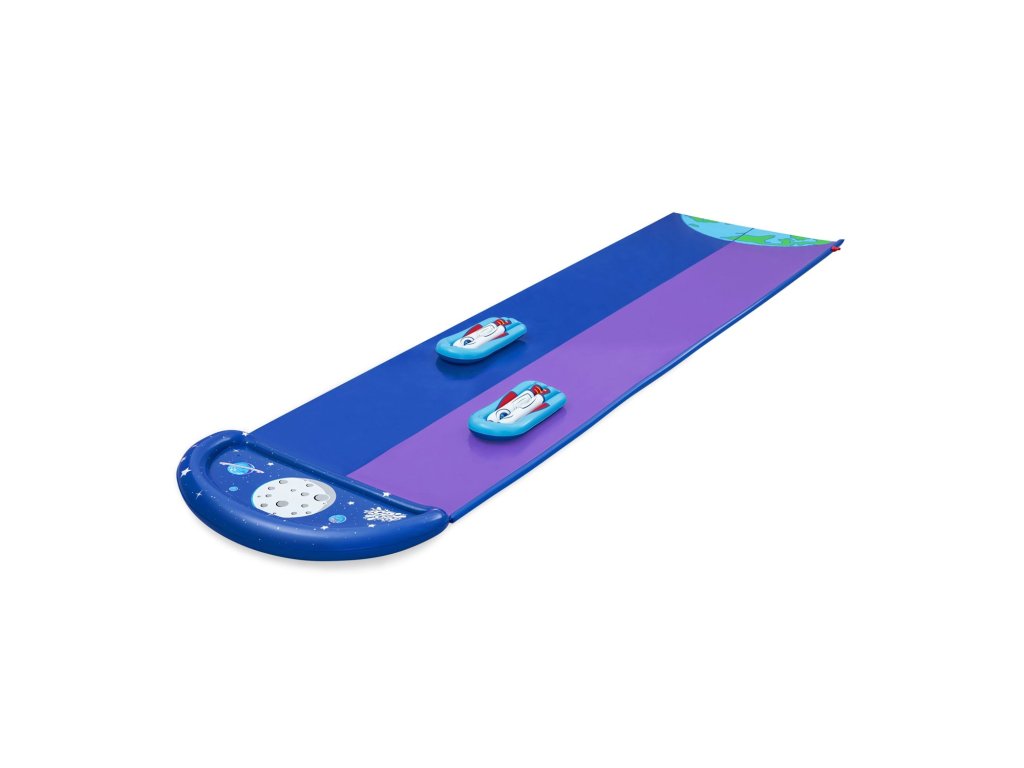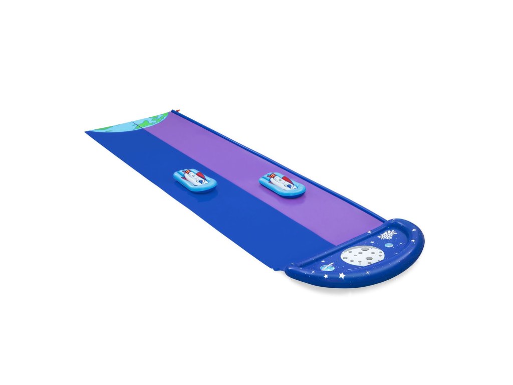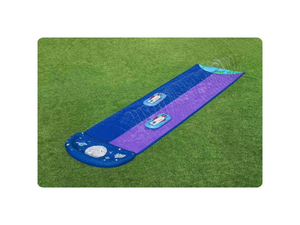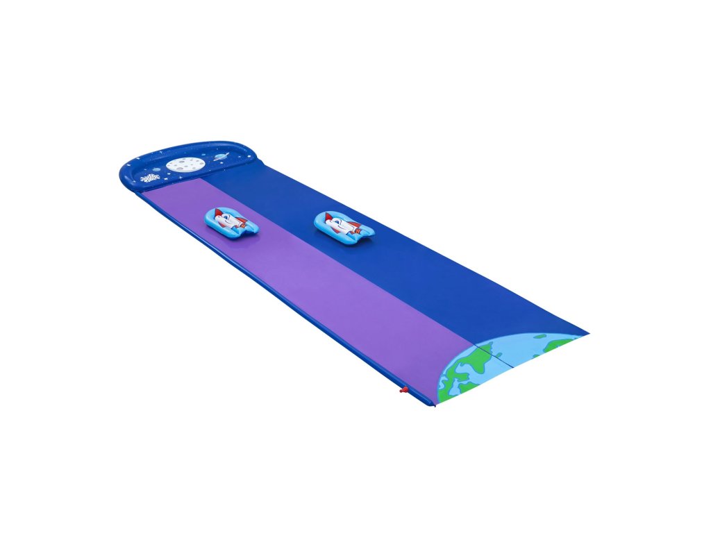 Tobogan ima dve stezi in vodne razpršilce, ki zagotavljajo zadostno spolzkost med zabavo.