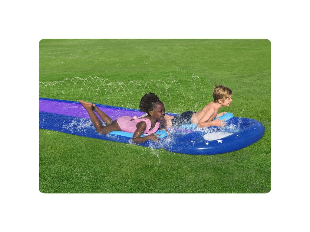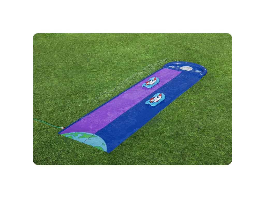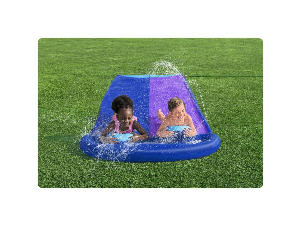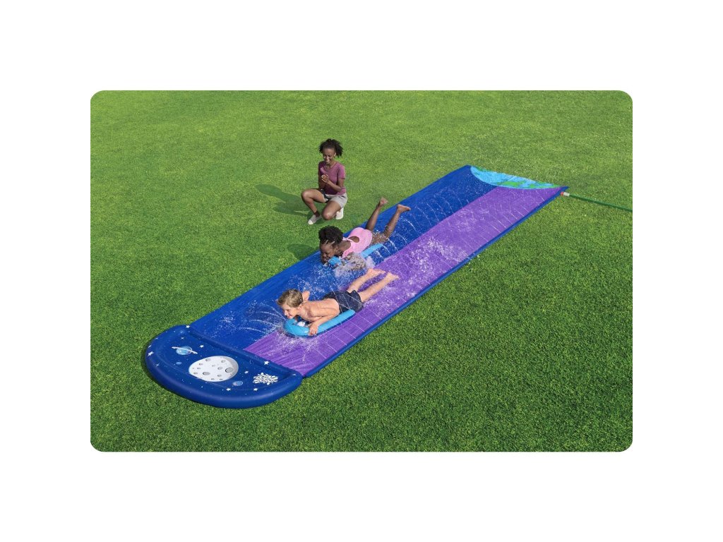 Tobogan ima dve stezi in vodne razpršilce, ki zagotavljajo zadostno spolzkost med zabavo.