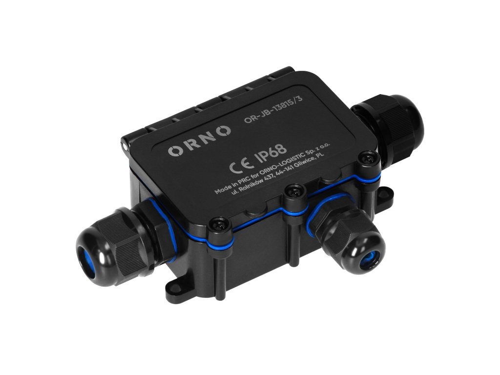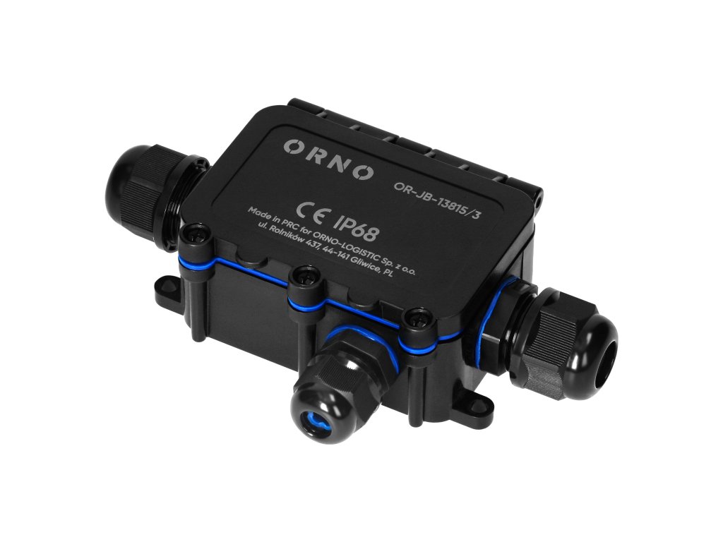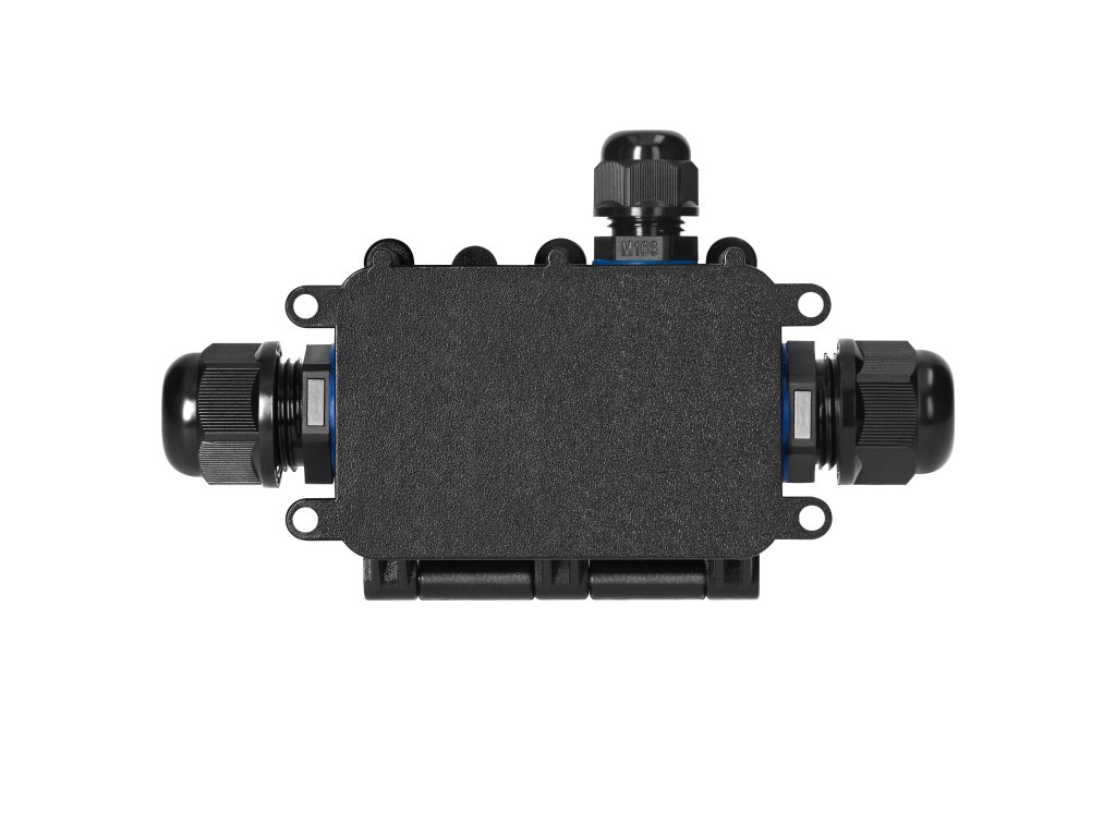 Vodotesna priključna škatla IP68 s 3 prehodi.
