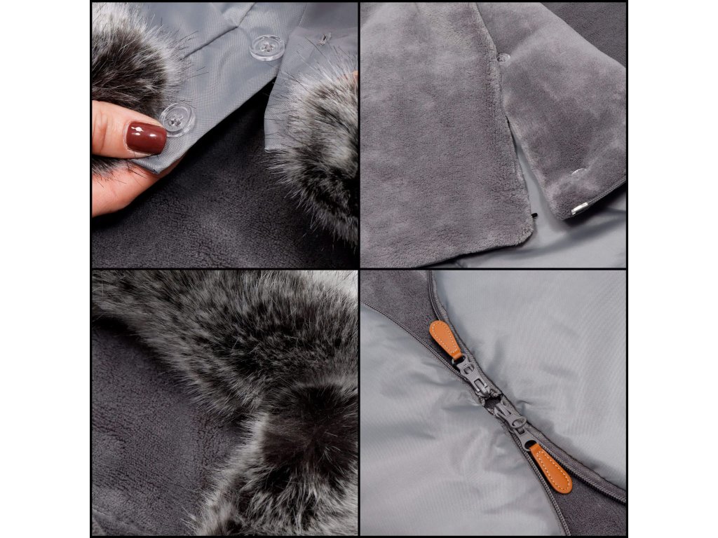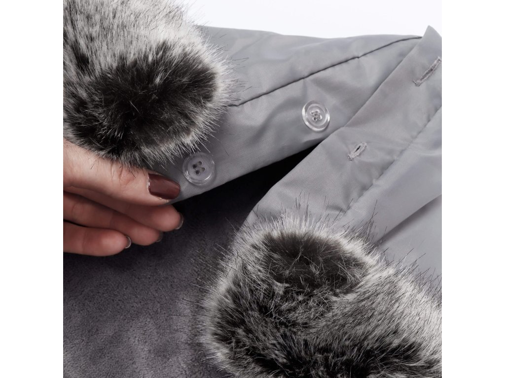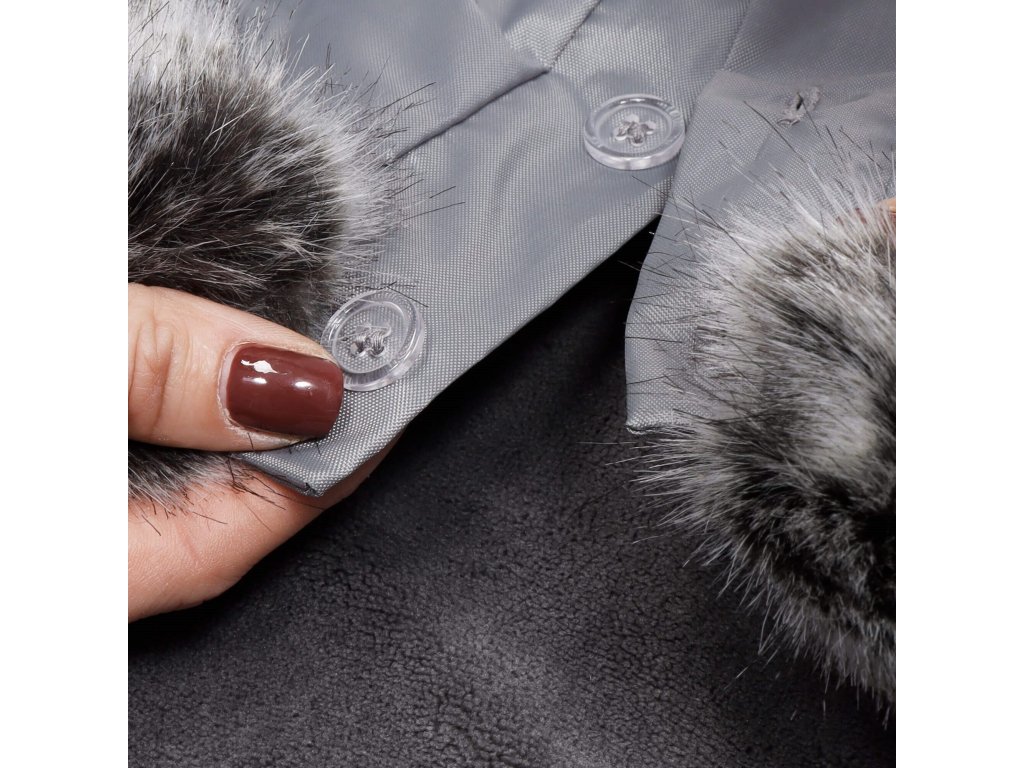 Dva snemljiva krznena ovratnika na straneh kapuce - zapiranje na črne gumbe