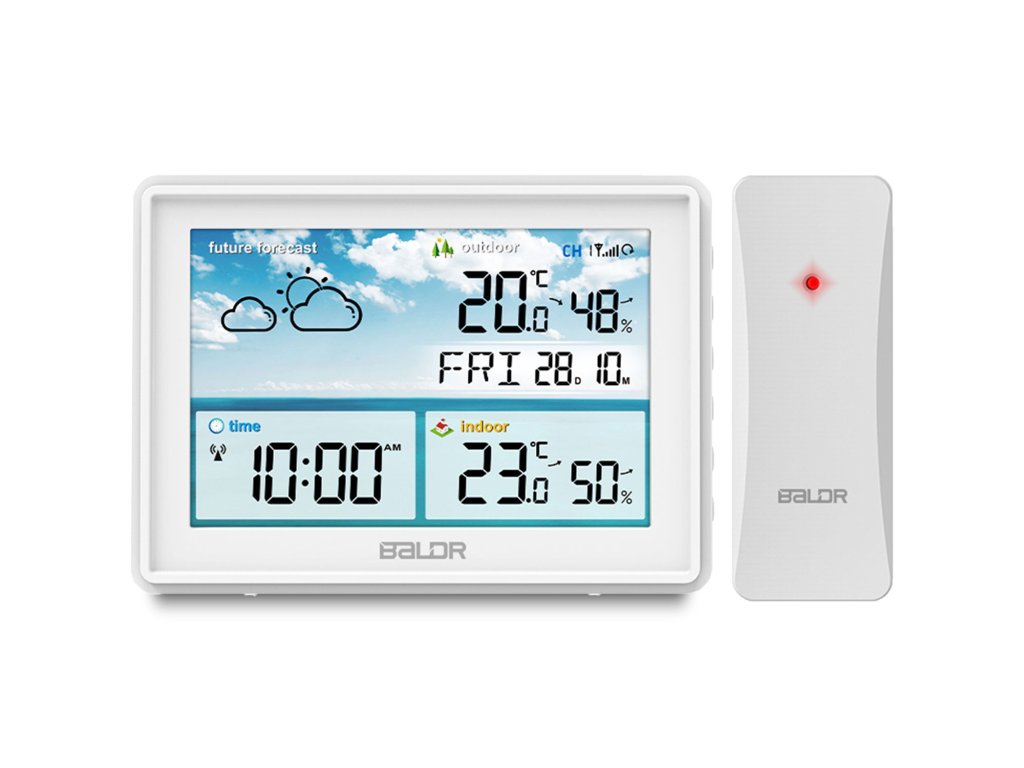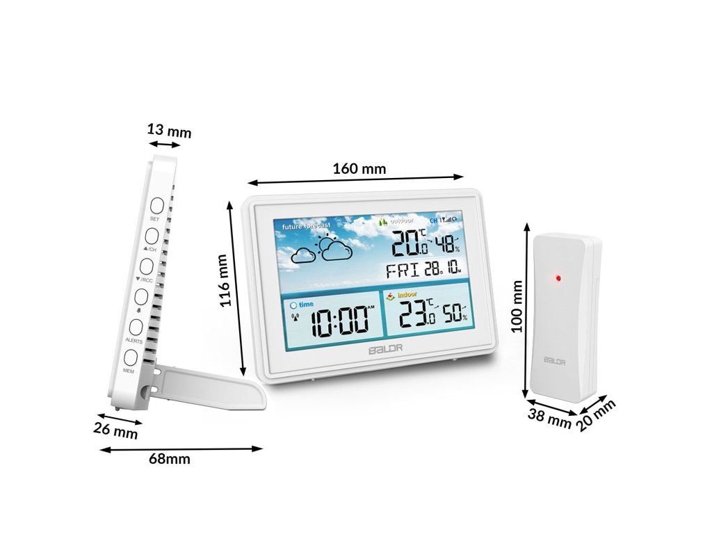 - Vremenska postaja z vgrajenim higrometrom vam omogoča spremljanje in vzdrževanje pravilne mikroklime v notranjosti ali zunaj.