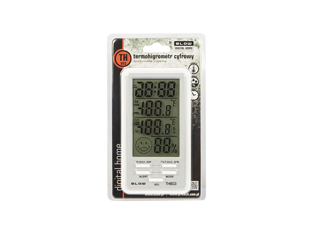 Grafični prikaz udobne temperature in vlage:- nasmejan obraz - ko je temperatura 18stC~25stC (64stF~77stF) in vlaga 40%RH ~ 65%RH- žalosten obraz - ko sta temperatura in vlaga drugačna Tehnični podatki:Obseg merjenja temperature: - Notranje: -10stC~+50stC (+14stF~+122stF) - Zunanje: -50stC~+90stC (-58stF~+194stF)Obseg merjenja notranje vlage: 20%~99%RH