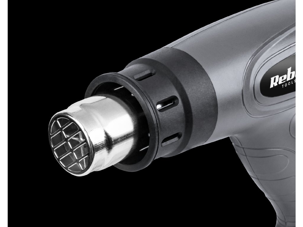 Za zagotavljanje maksimalnega udobja in učinkovitosti med delom je toplotna pištola Rebel Tools prilagojena tudi za delo s šobo navzgor, kar je lahko uporabno med hlajenjem naprave ali dolgim delom, ki zahteva, da je tok toplega zraka usmerjen navpično navzgor.