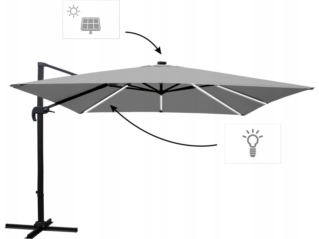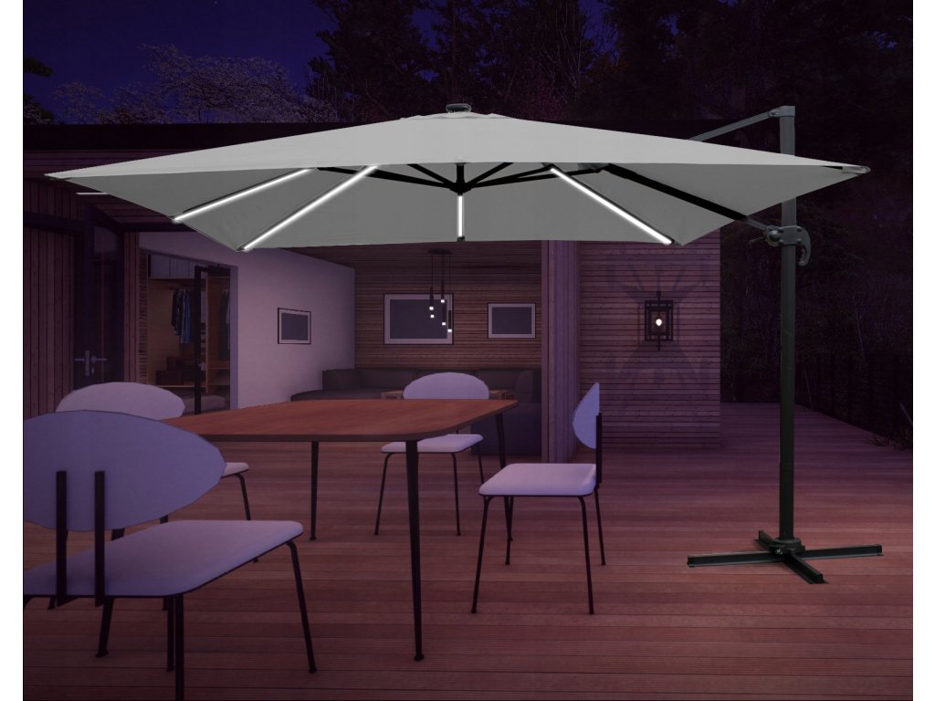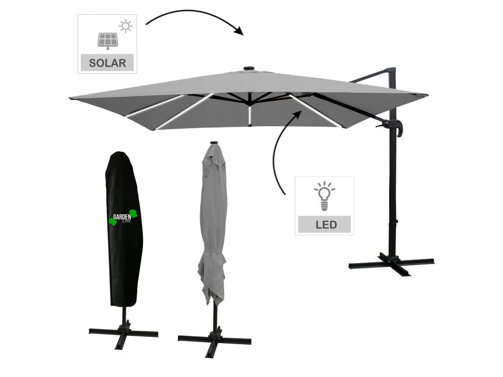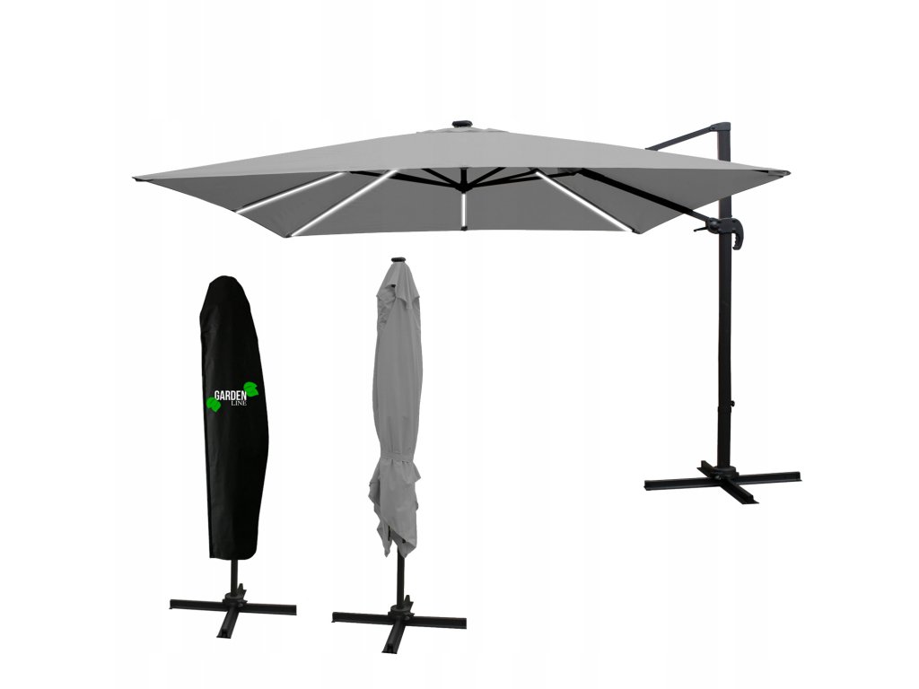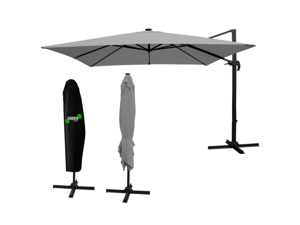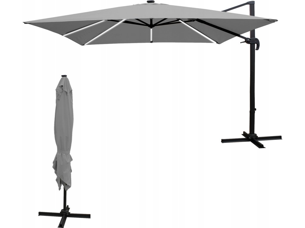 VRTAČNI SONČNIK 3 x 3 M SIV "ROMA" Z ETUJI IN LED *1558