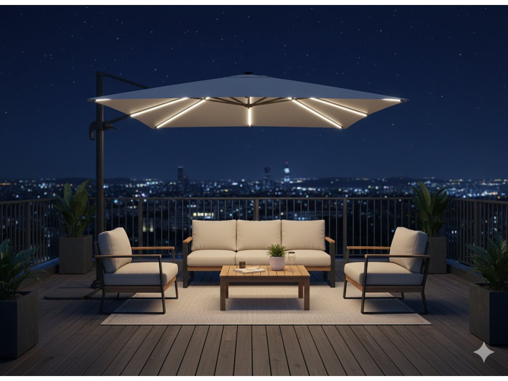 VRTILNI SENČNIK SIV "ROMA" LED