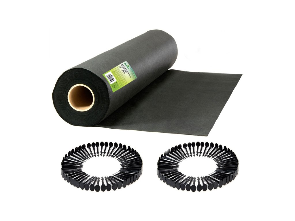 Vrtna agrotekstilija 1 m x 75 m + 100 klinov Plonos - črna