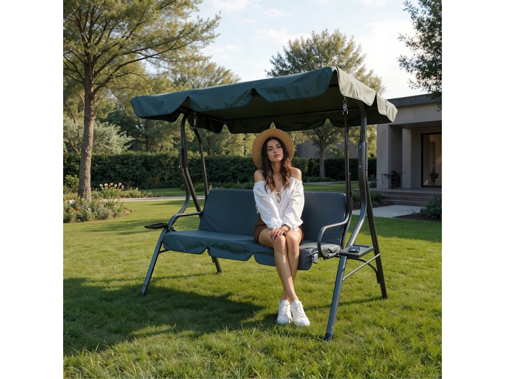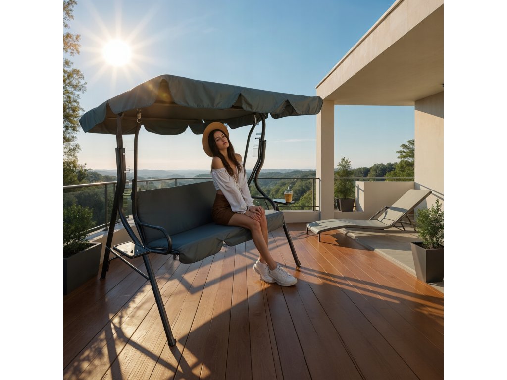 Eleganten in udoben vrtni gibanec je odlična izbira za tiste, ki cenijo udoben počitek na svežem zraku. Opremljena z nastavljivo streho in stabilno konstrukcijo, nudi udobje in vzdržljivost dolga leta. Dodatki, kot so plastični držali za pijače in mehak sedežni vzglavnik, povečujejo udobje pri uporabi. Končni detajl z volanom daje gibanju estetski pridih.