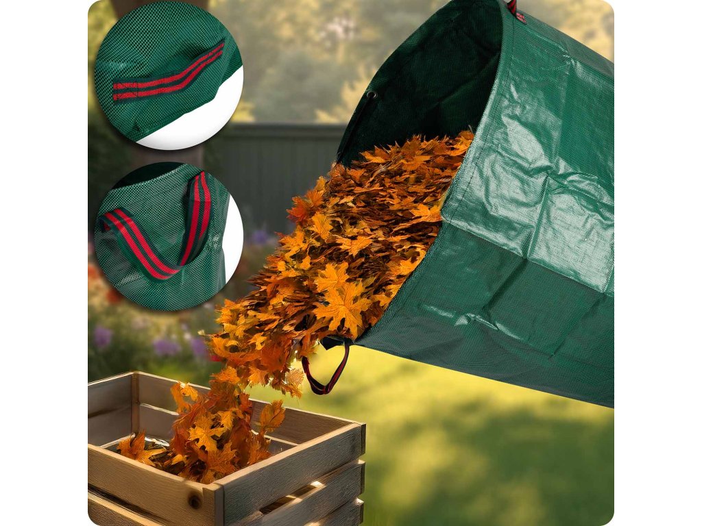 - Ekološka uporaba – idealna za zbiranje listja in zelenega odpada pred premikanjem na kompostnik.