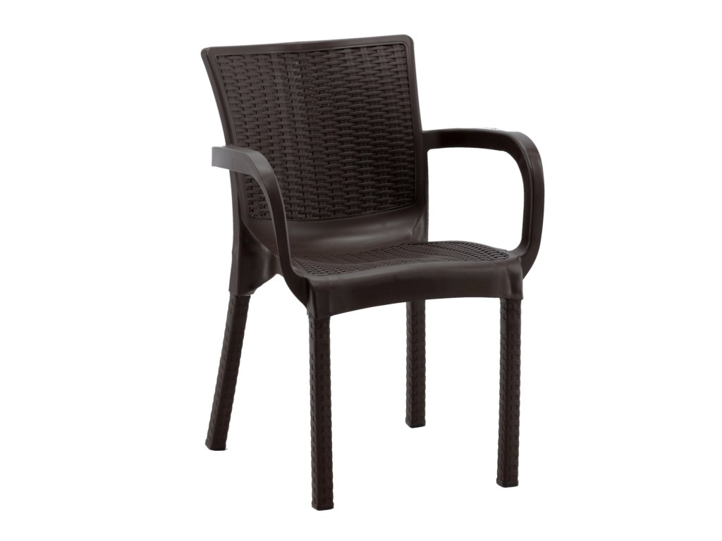Vrtni stolček izdelan iz visokokakovostne plastike, odporne proti vremenskim vplivom. Namenjen za zunanjo uporabo, idealen za vrt ali teraso. Opremljen z nasloni za roke, ki zagotavljajo dodatno udobje med sedenjem.