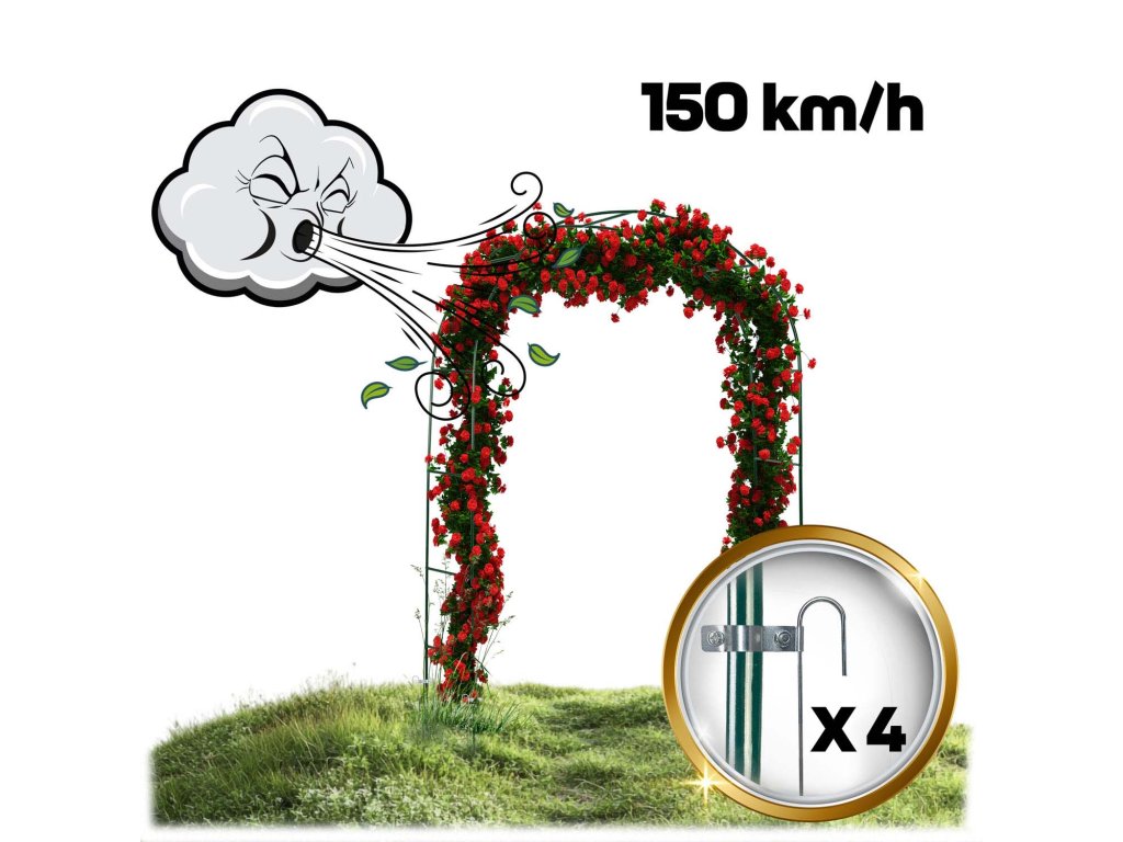 - Zaradi priloženih pritrdilnih žebljev v kompletu bo pergola zdržala nenadne vremenske spremembe, vaše rastline in vrt pa bodo varni.