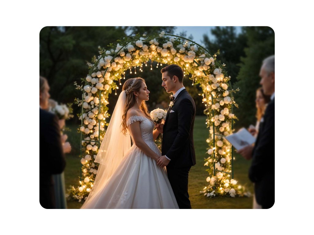 Združevanje pergole z rastlinami, lučkami in drugimi okraski omogoča doseganje pravljičnih učinkov za posebne priložnosti.