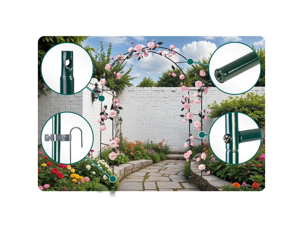 - Intuitivna konstrukcija in jasna navodila omogočajo njeno hitro postavitev v vrtu, pripravljeno za vzpenjavke.