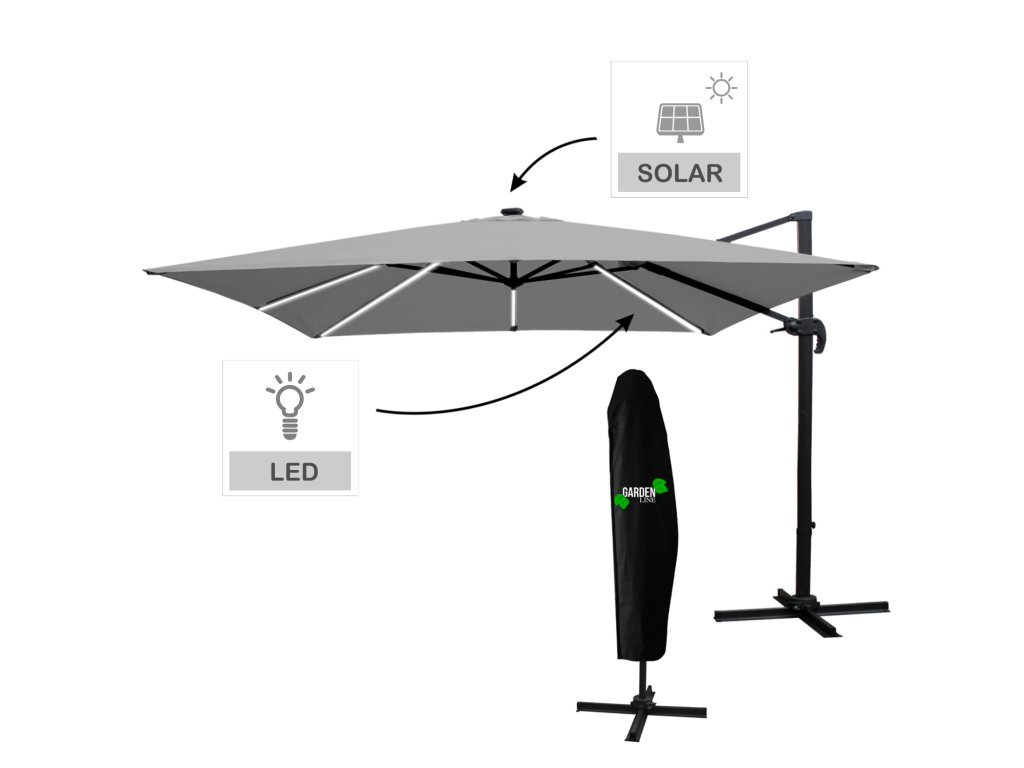 VRTNA SONČNICA 3 x 4 M SIVA "ROMA" S PREKRIVALO IN LED OSVETLITVIJO *1572