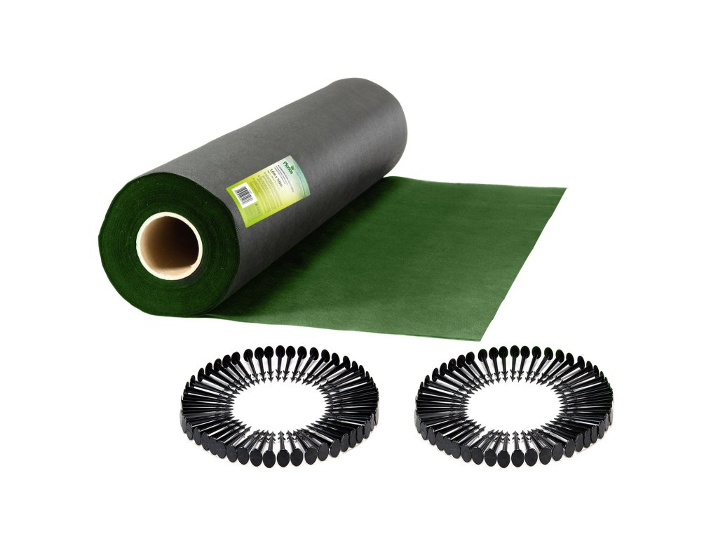 Vrtna tkanina 1,6 m x 100 m 90 g/m2 + 100 klincev Plonos - črno-zelena