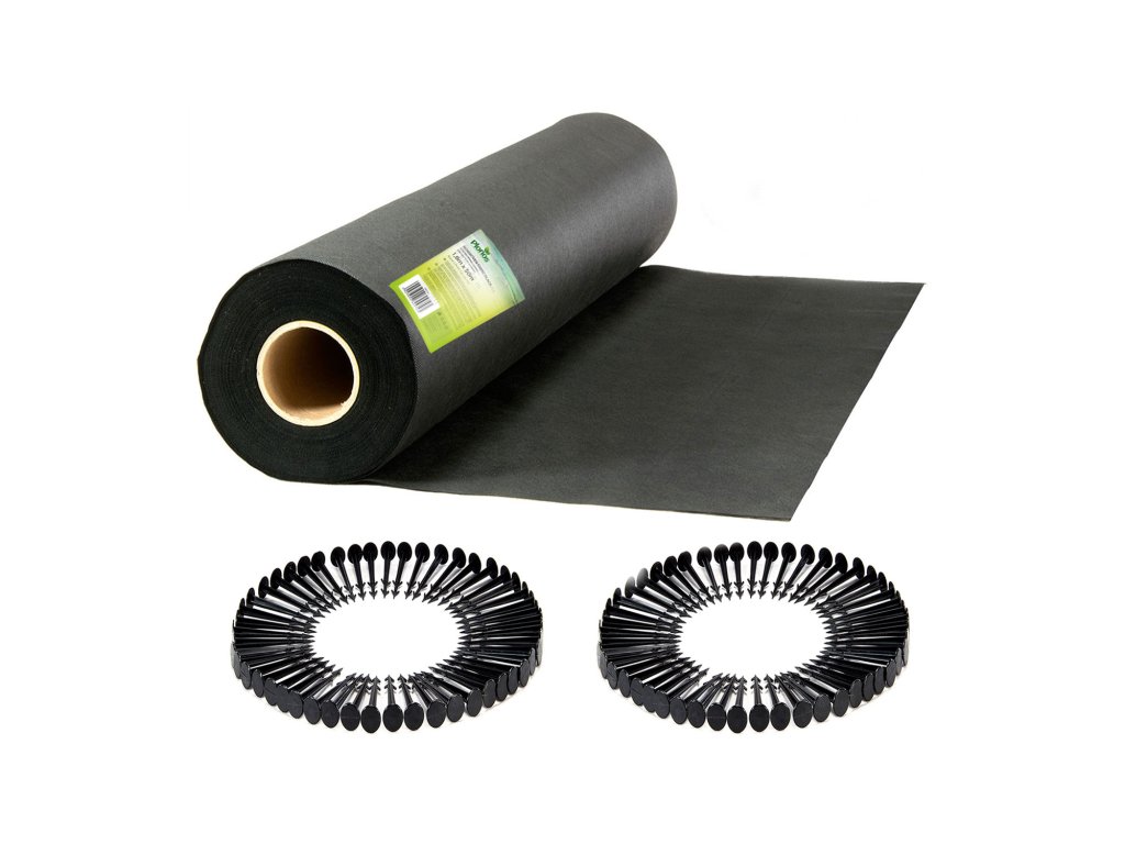 Vrtna tkanina 1,6 m x 50 m 90 g/m2 + 100 žebljev Plonos - črna