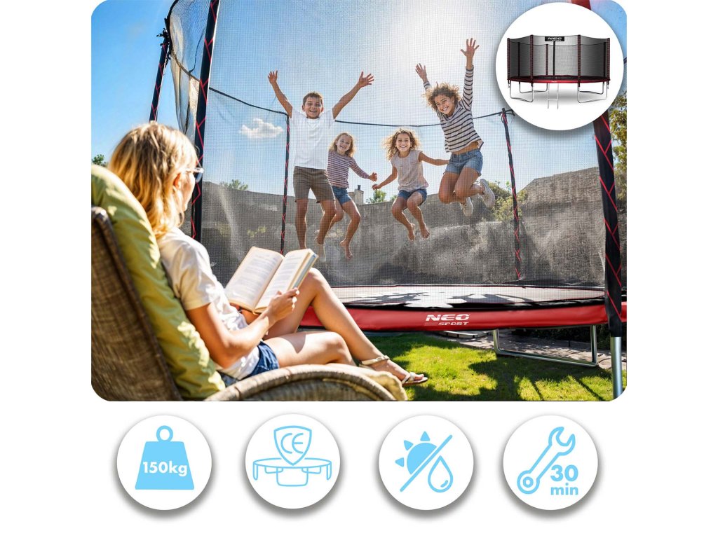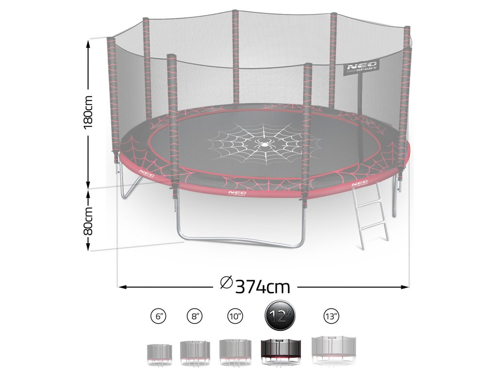 Vrtna trampolina 12ft/374cm z zunanjo mrežo in lestvijo Neo-Sport