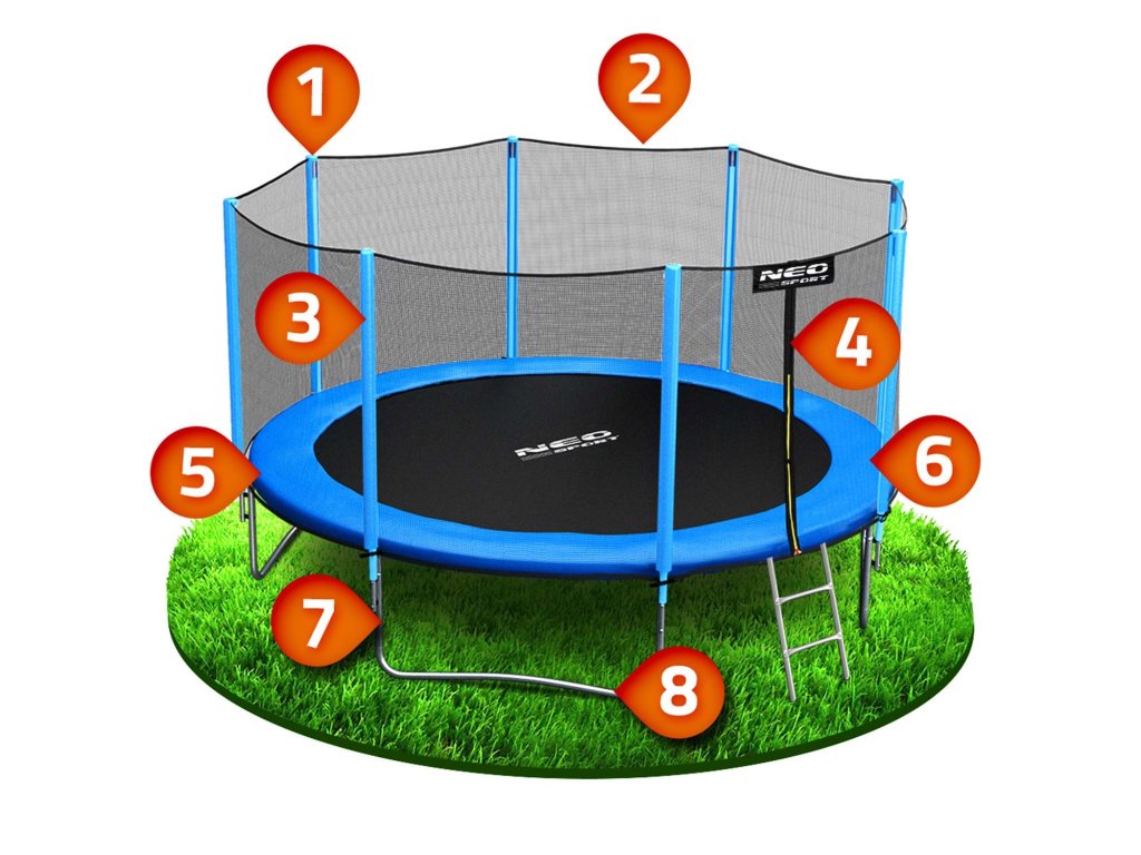 - v kompletu: vrtna trampolina, zaščitna mreža, kovinske lestve, navodila za uporabo