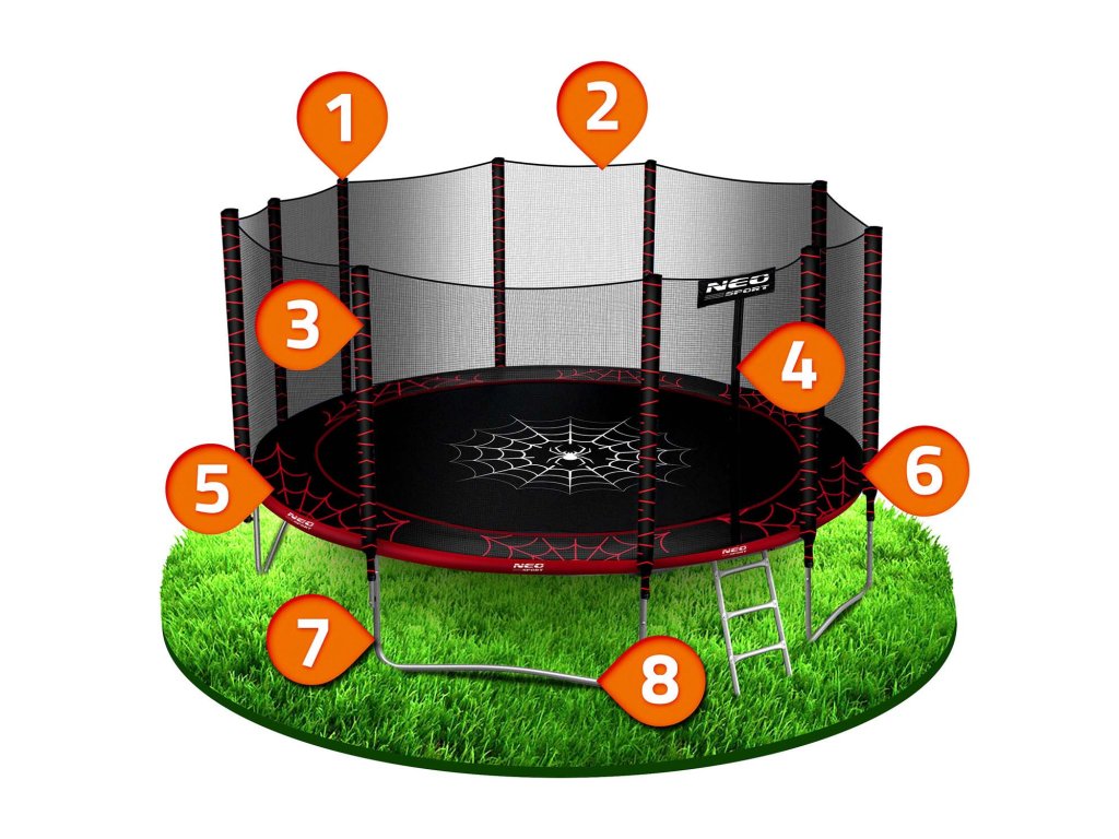 - v paketu: vrtna trampolina, zaščitna mreža, kovinska lestev, navodila za uporabo