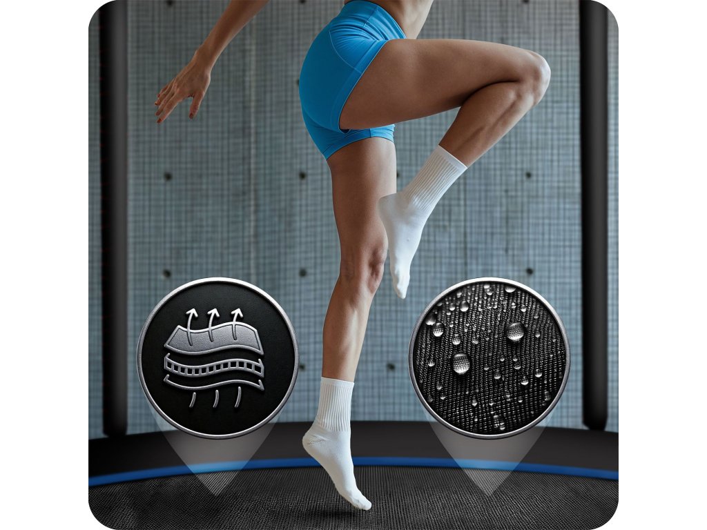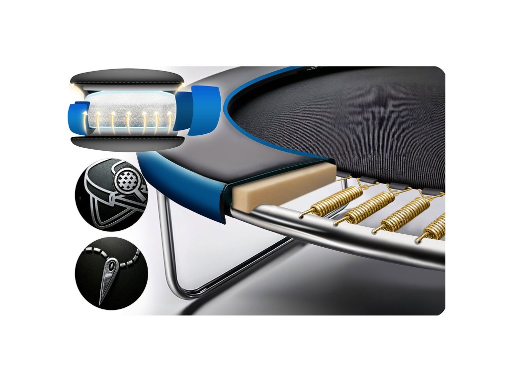 - Vzdržljiva podloga (trampolin) - vodoodporna, elastična, 8-krat prešita.
