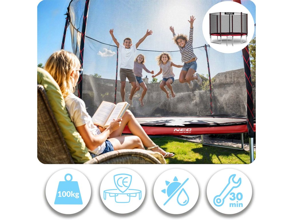 Vrtna trampolina 8ft/252cm z zunanjo mrežo in lestev Neo-Sport