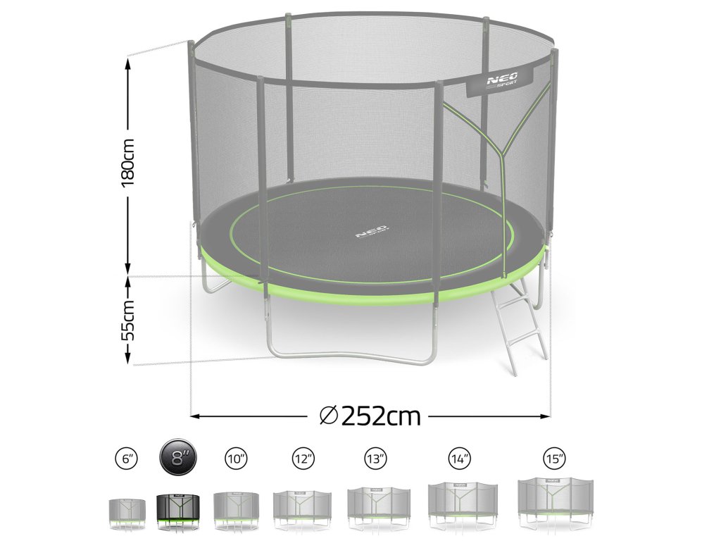 Vrtna trampolina 8ft/252cm z zunanjo mrežo in lestvijo Neo-Sport