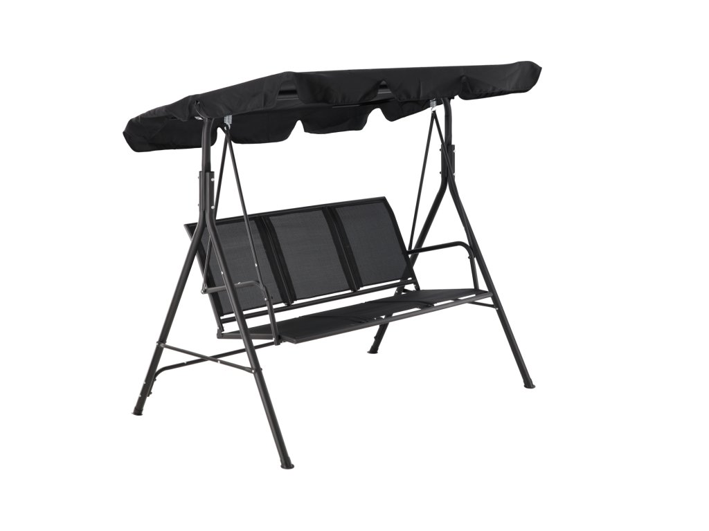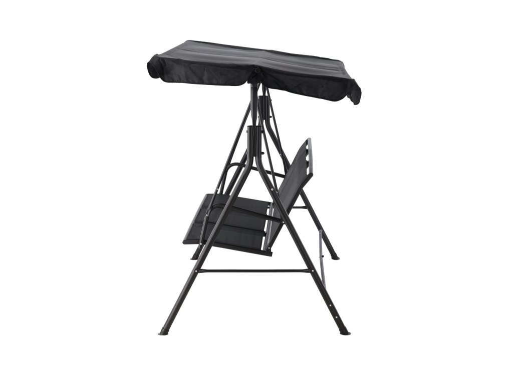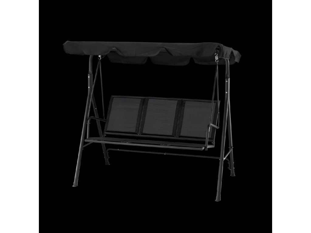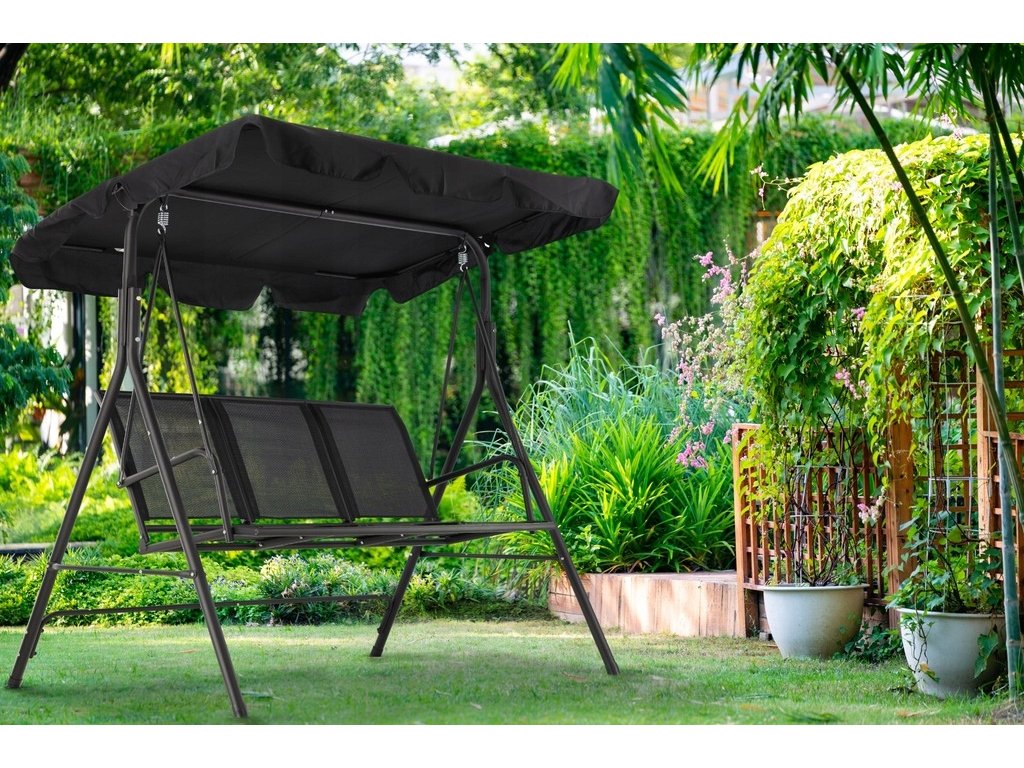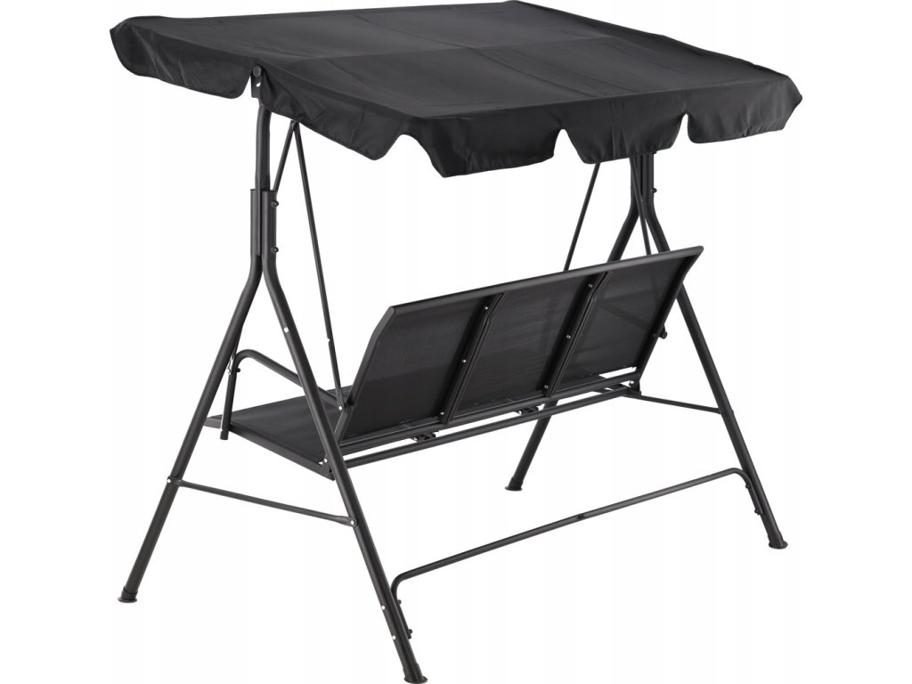 Elegantna in udobna vrtna hujačka, idealna za sprostitev na prostem. Opremljena z veliko nastavljivo streho, ki ščiti pred soncem, in trpežnim sedežem iz materiala tekstilene, odpornega na vremenske vplive. Stabilna jeklena konstrukcija in obešanje na kovinskih vzmeteh zagotavljajo udobje pri uporabi in dolgo življenjsko dobo.