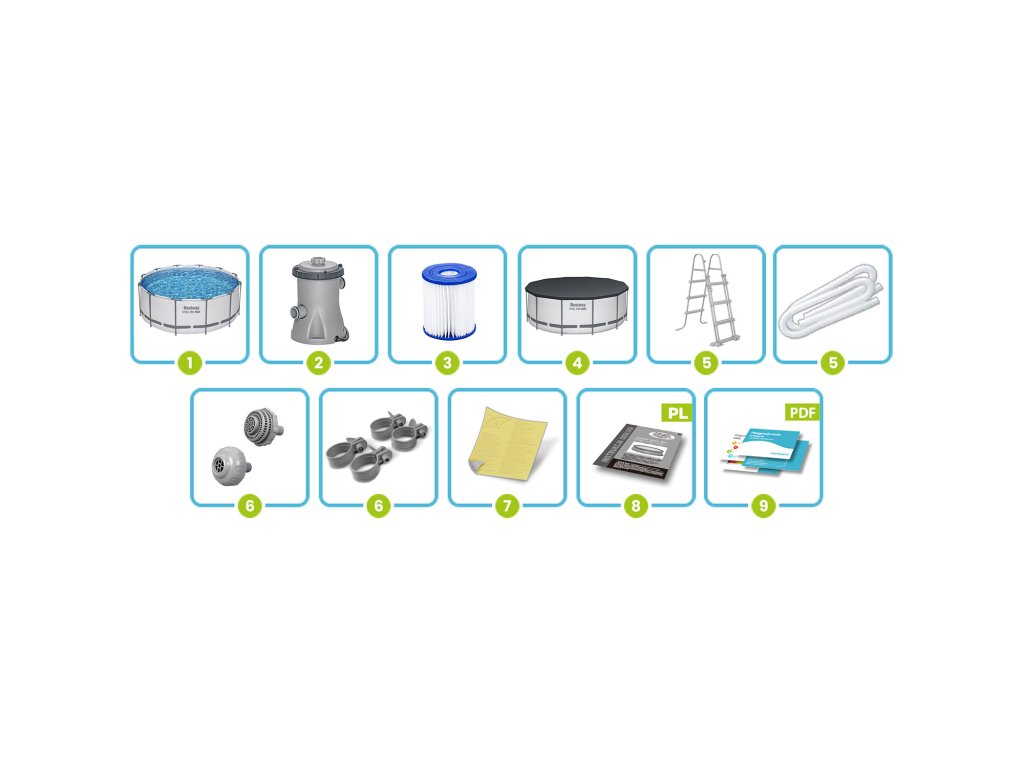 Nakup bazena Bestway z ustreznimi dodatki zagotavlja, da prejmete najvišjo kakovost in vse bo popolnoma ustrezalo. Vsebina kompleta