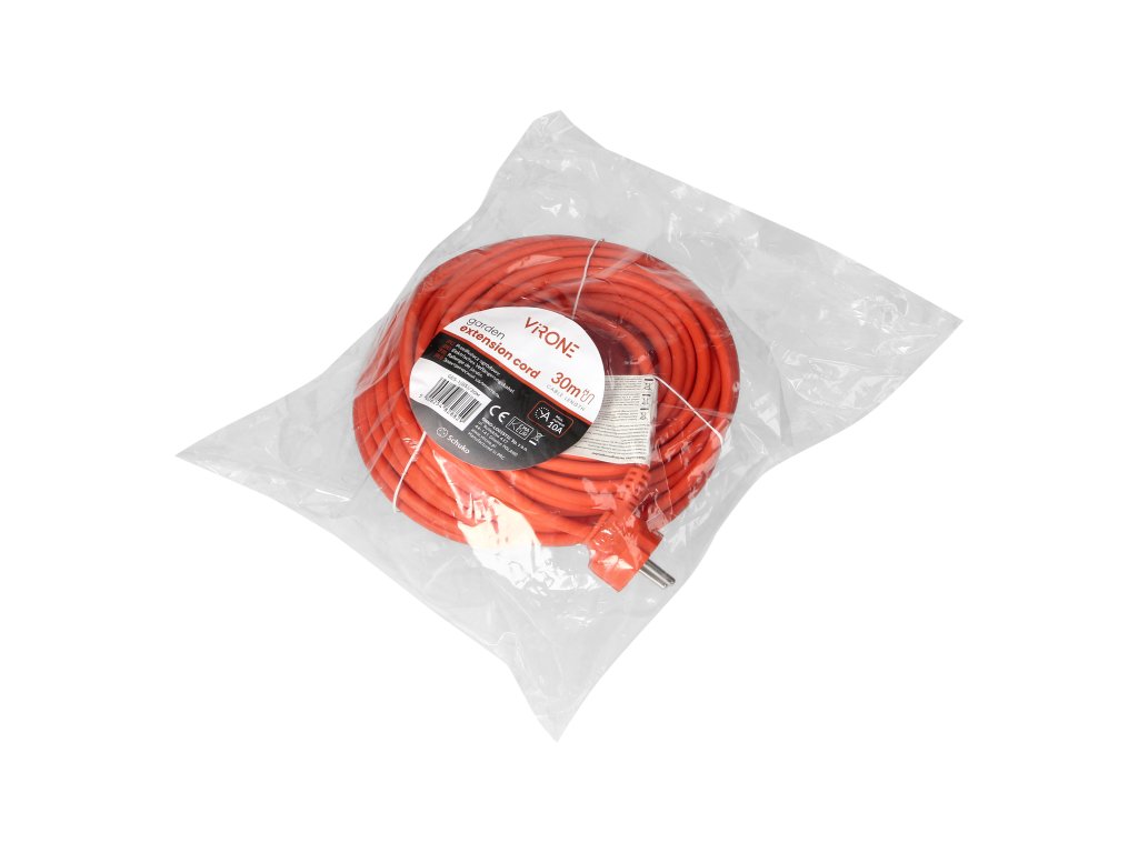 - Dolžina kabla: 30 metrov. S zadostnim dosegom vam Vrtni podaljšek omogoča udobno delo tudi v največjih vrtovih brez potrebe po povezovanju dodatnih kablov.
