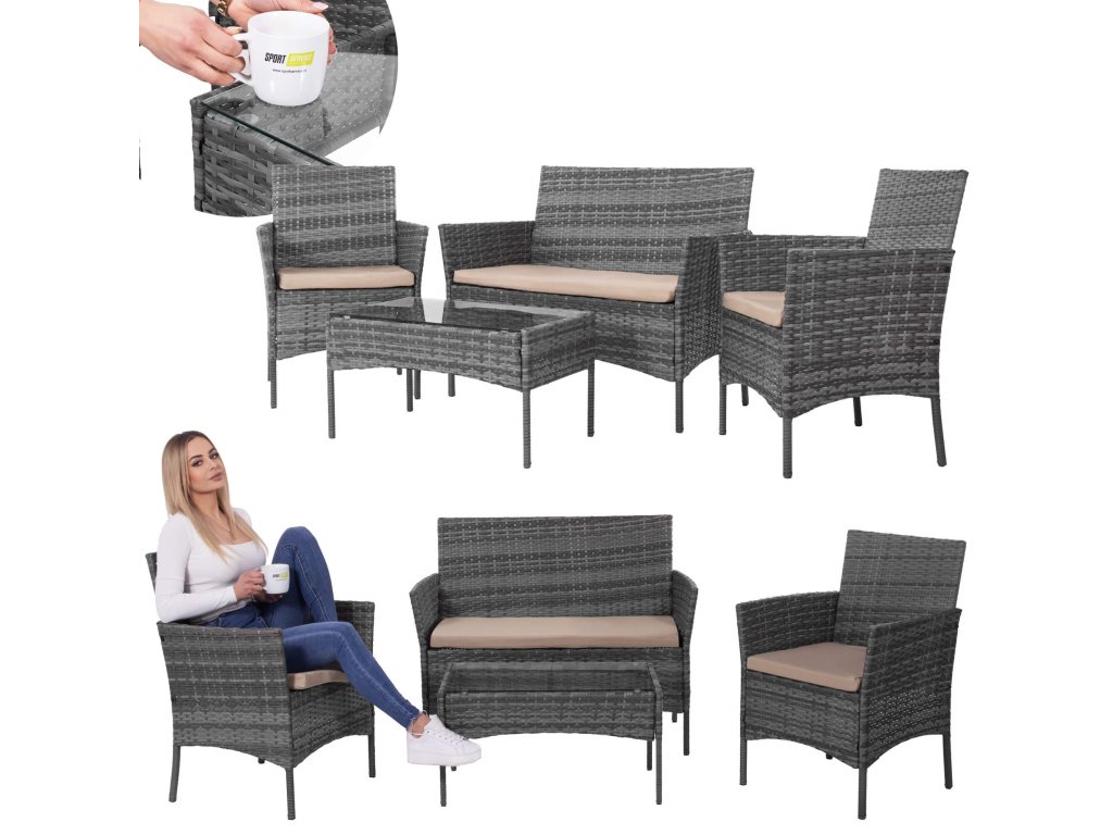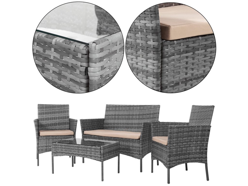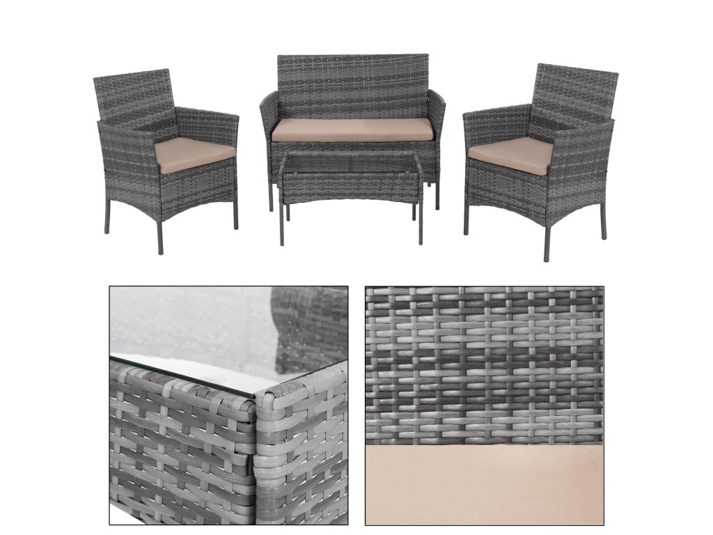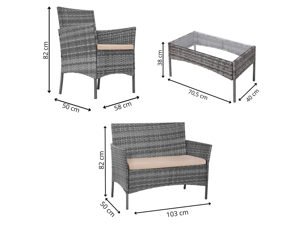 - Vključeni elementi: 2x stol, kavč, miza s stekleno ploščo