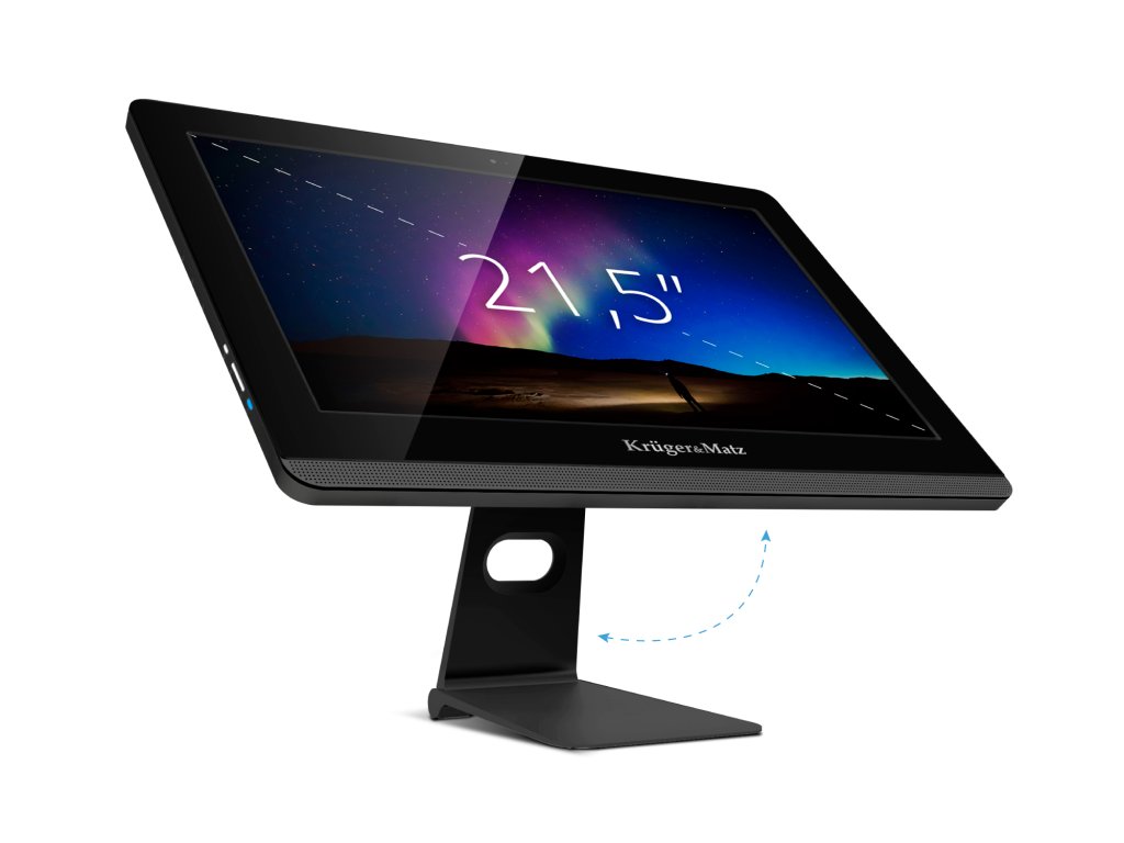 Po meriKruger&Matz all-in-one računalnik bo postal vaš osebni nadzorni center tako doma kot v pisarni. Ta ena naprava je monitor in centralna enota združena v enem tankem ohišju. Elegantna brezžična zasnova računalnika omogoča ohranjanje estetike v vsakem prostoru. Velik 21,5" zaslon z Full HD ločljivostjo zagotavlja ostro sliko, polno naravnih barv. Prednost naprave je tudi nastavljiv kot zaslona od -10° do 90°, tako da ga lahko prilagodite svojim potrebam, ne glede na to, kam ga postavite.