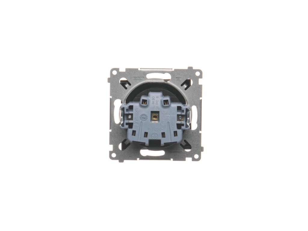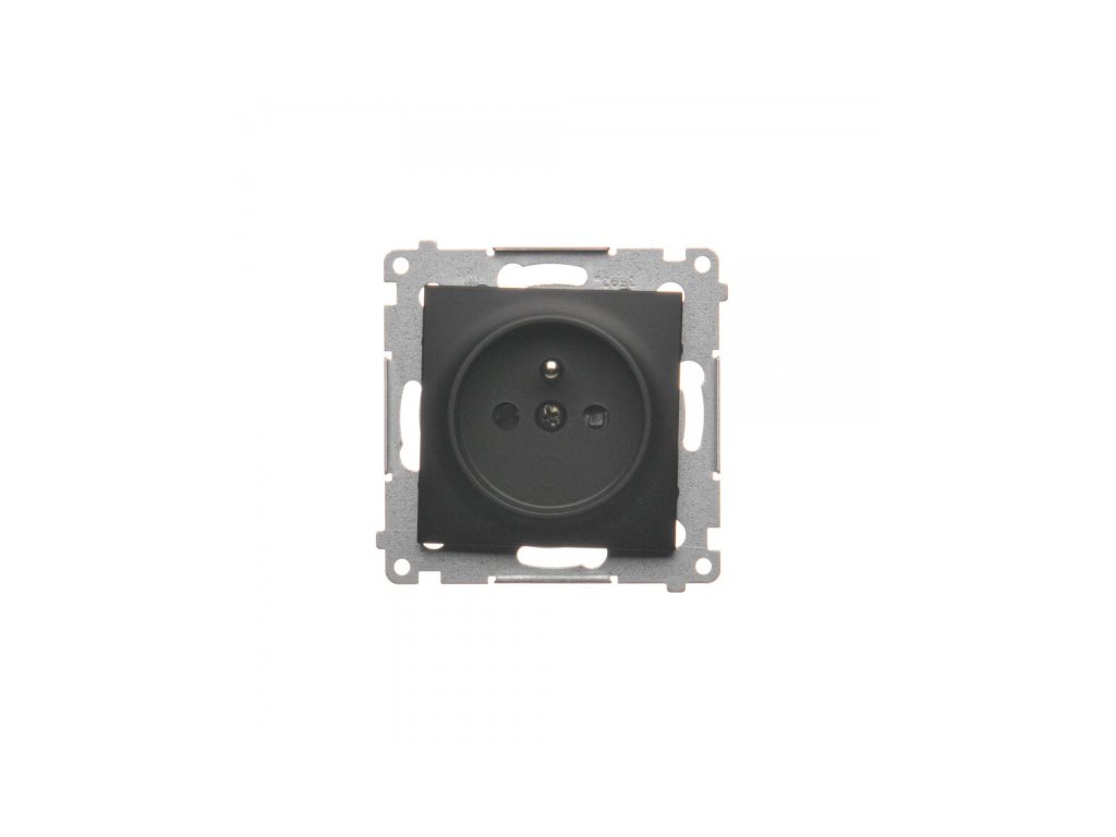 Vtičnica z ozemljitvijo in zaščitnimi pokrovčki (modul) 16A, 250V, vijačne sponke, črna matSpecifikacija: