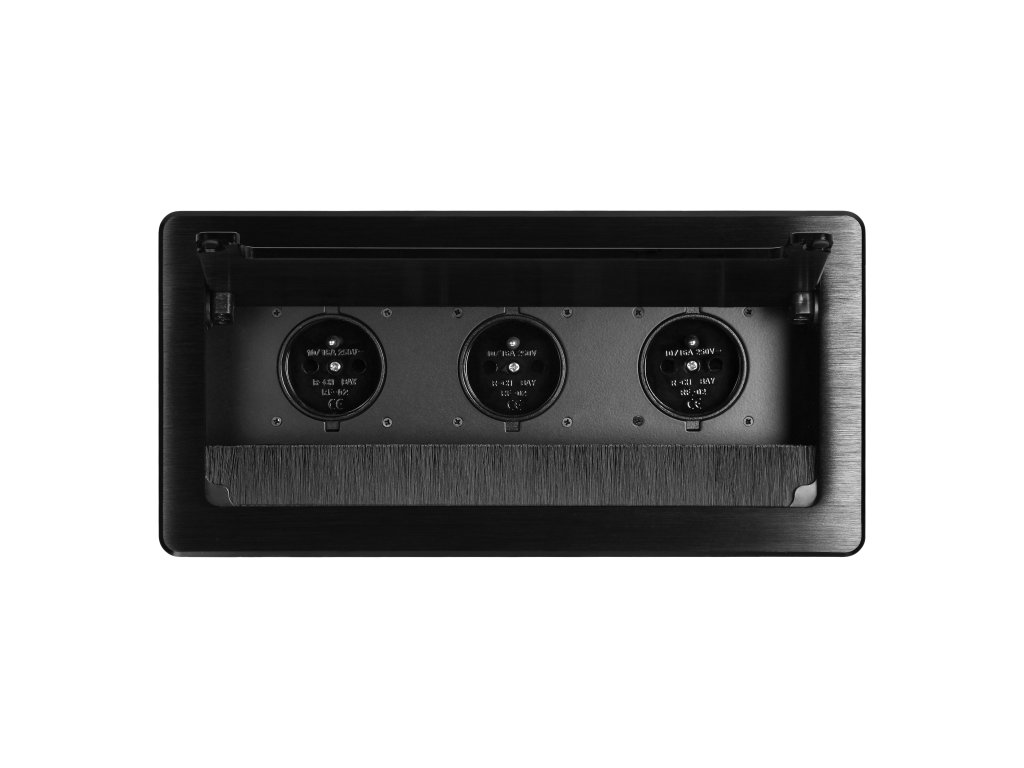 - Trojno napajanje: Vtičnica ima tri vtičnice tipa 2P+E, kar omogoča dovolj prostora za priključitev več naprav hkrati, brez potrebe po uporabi dodatnih podaljškov ali razdelilnikov.